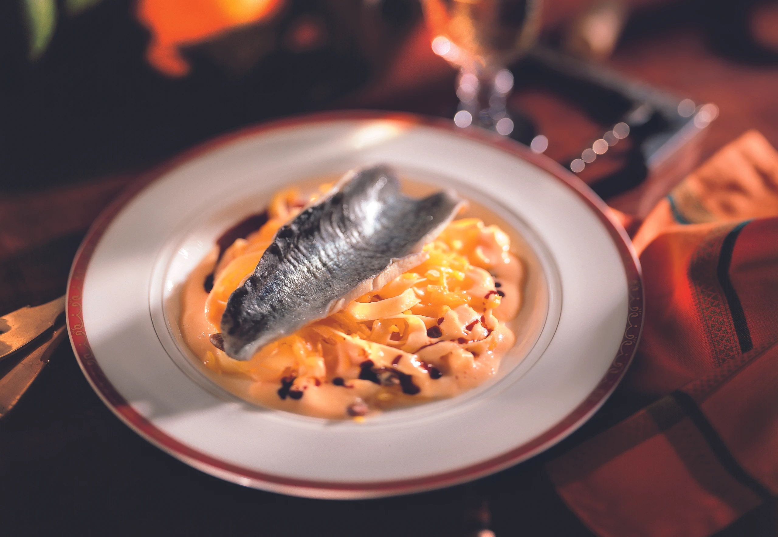 Kürbisrahmnudeln mit pochierten Forellenfilets