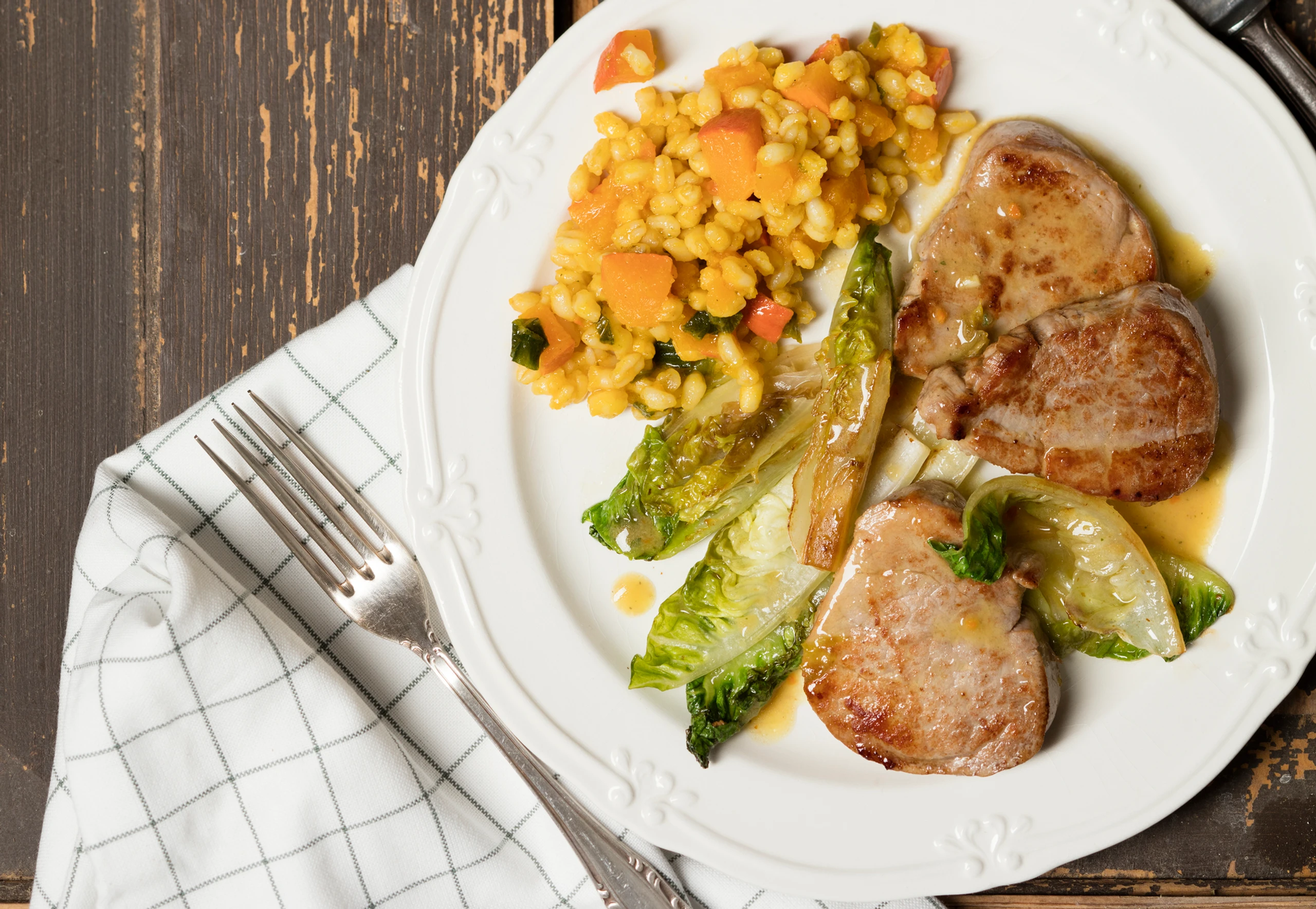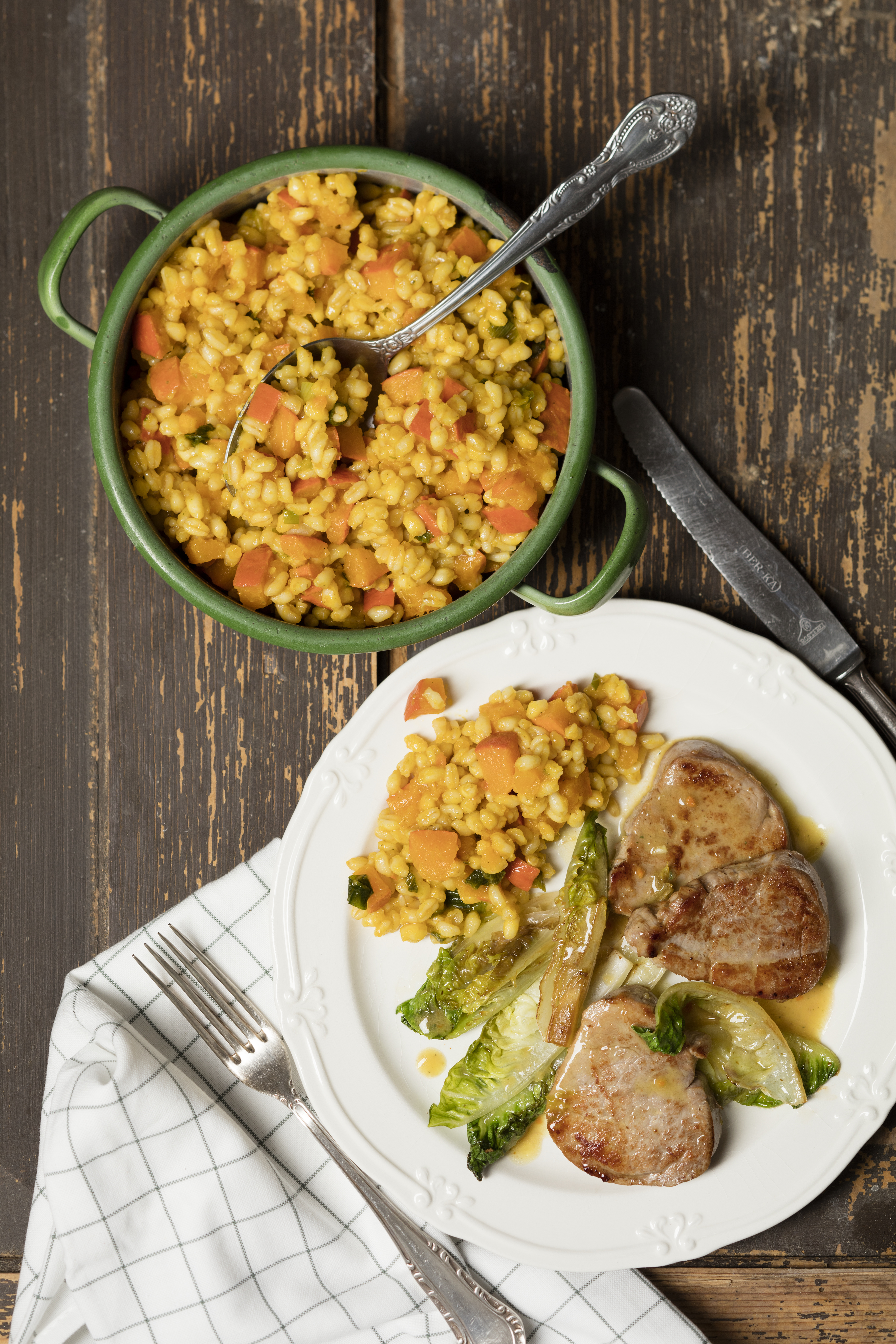 Kürbisweizen mit Schweinsfilet und Salat
