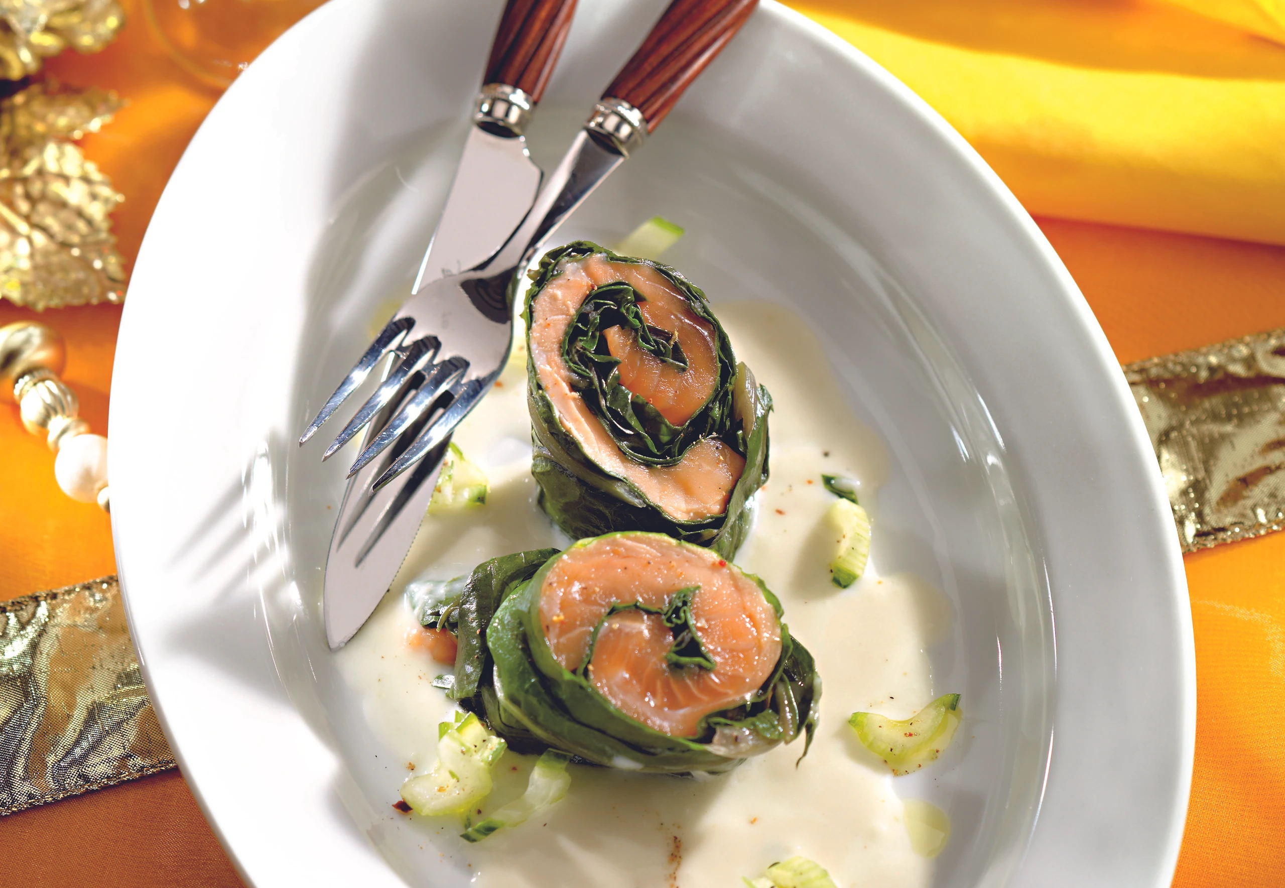 Zitronige Lachs-Mangold-Rouladen