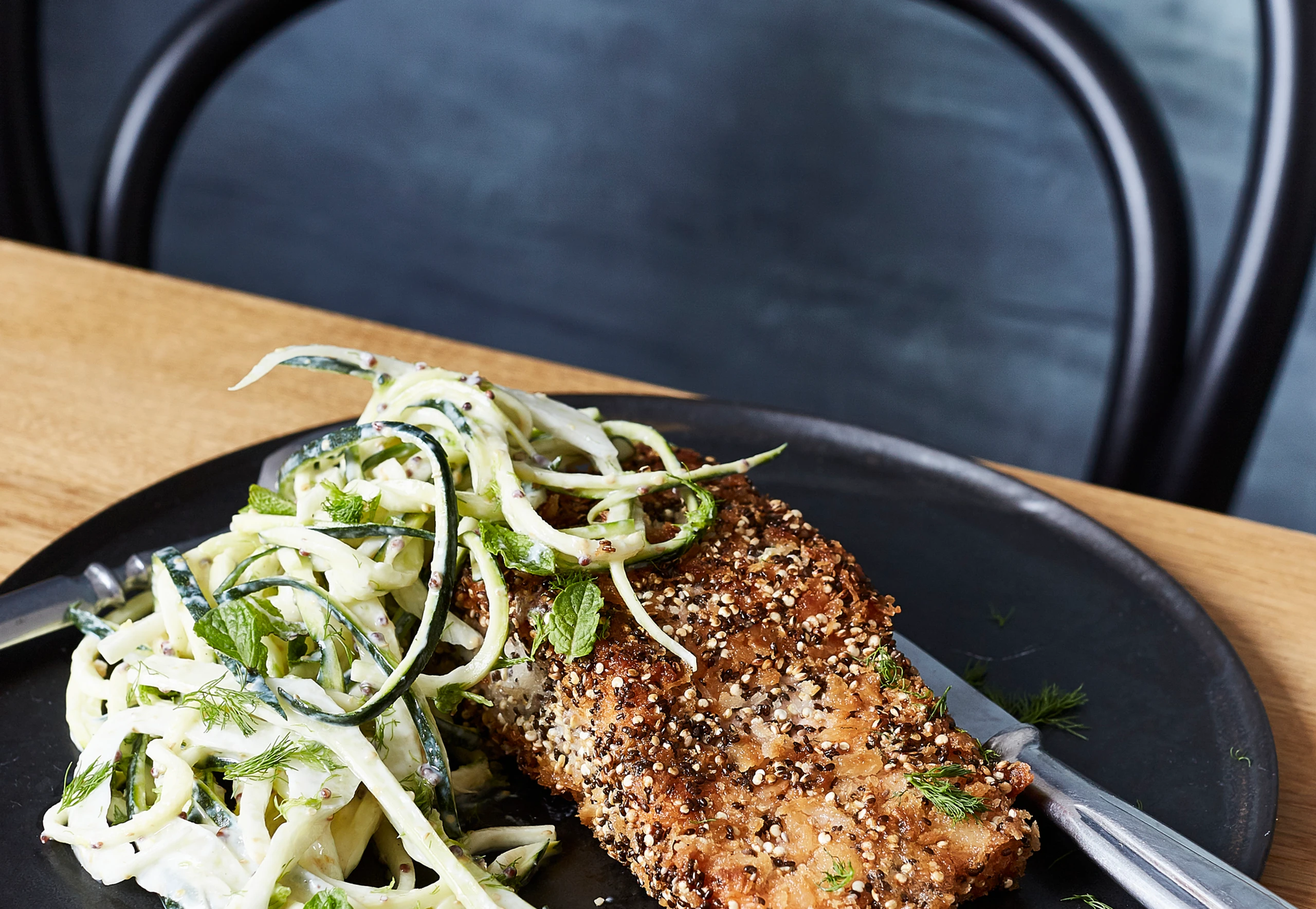 Lachs mit Quinoa-Panier und Zucchini-Fenchelsalat