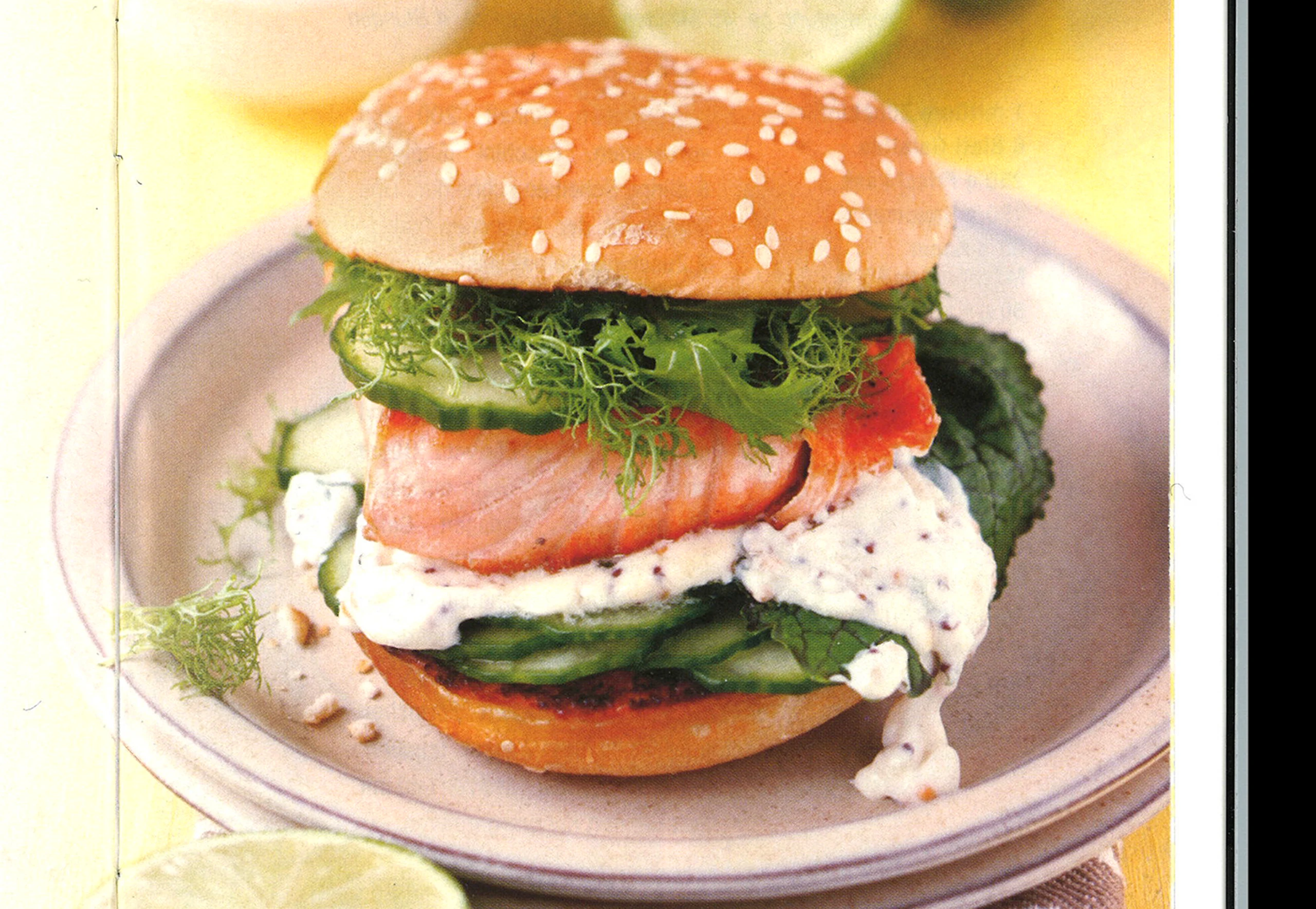 Weckerl durchschneiden. Böden mit der Hälfte von den Gurken und der Sauce belegen bzw. bestreichen. Lachs darauf geben und mit übrigen Gurken, Sauce und Salat belegen. Deckel darauf setzen.