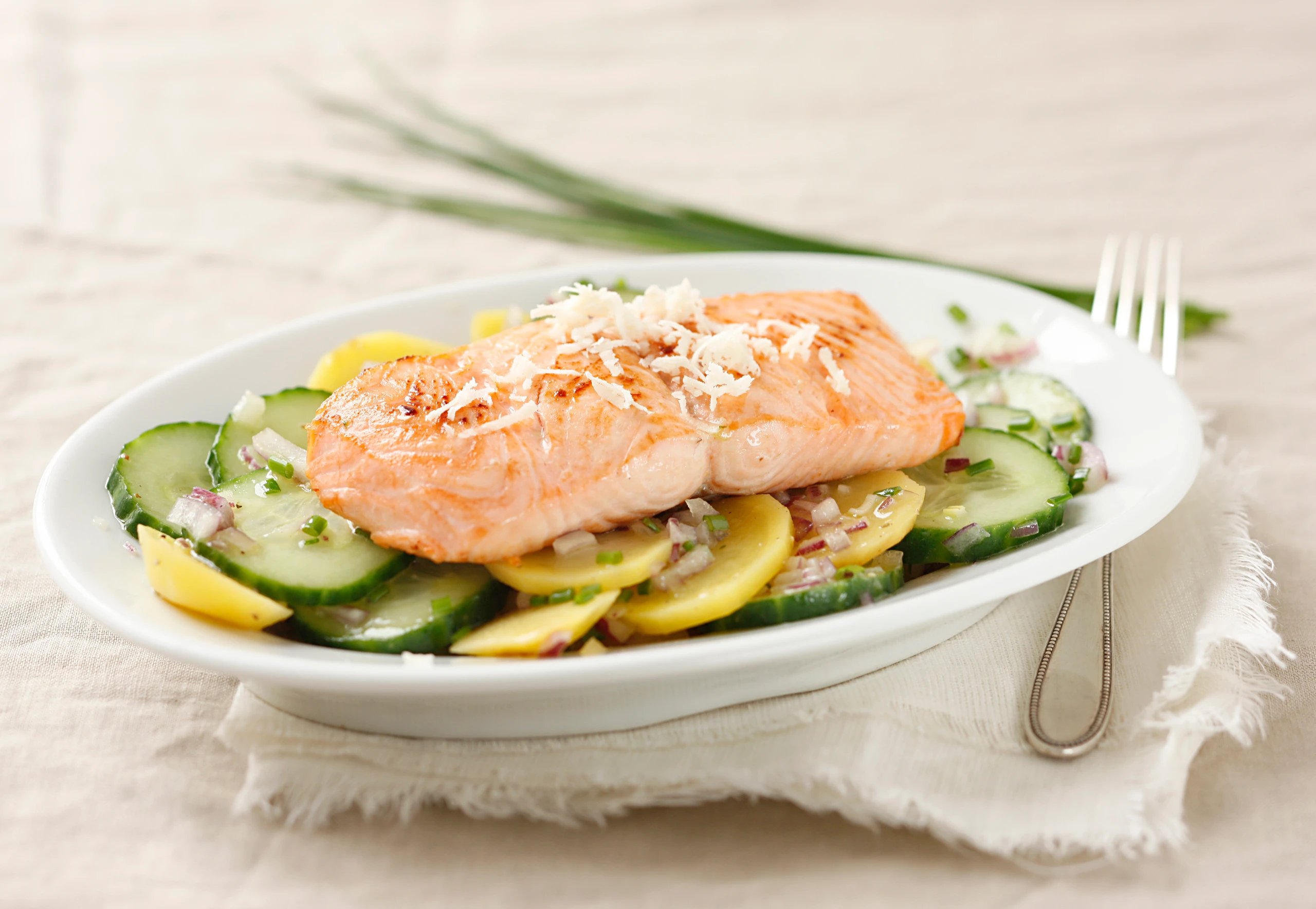 Lachsfilet mit Erdäpfel-Gurkensalat