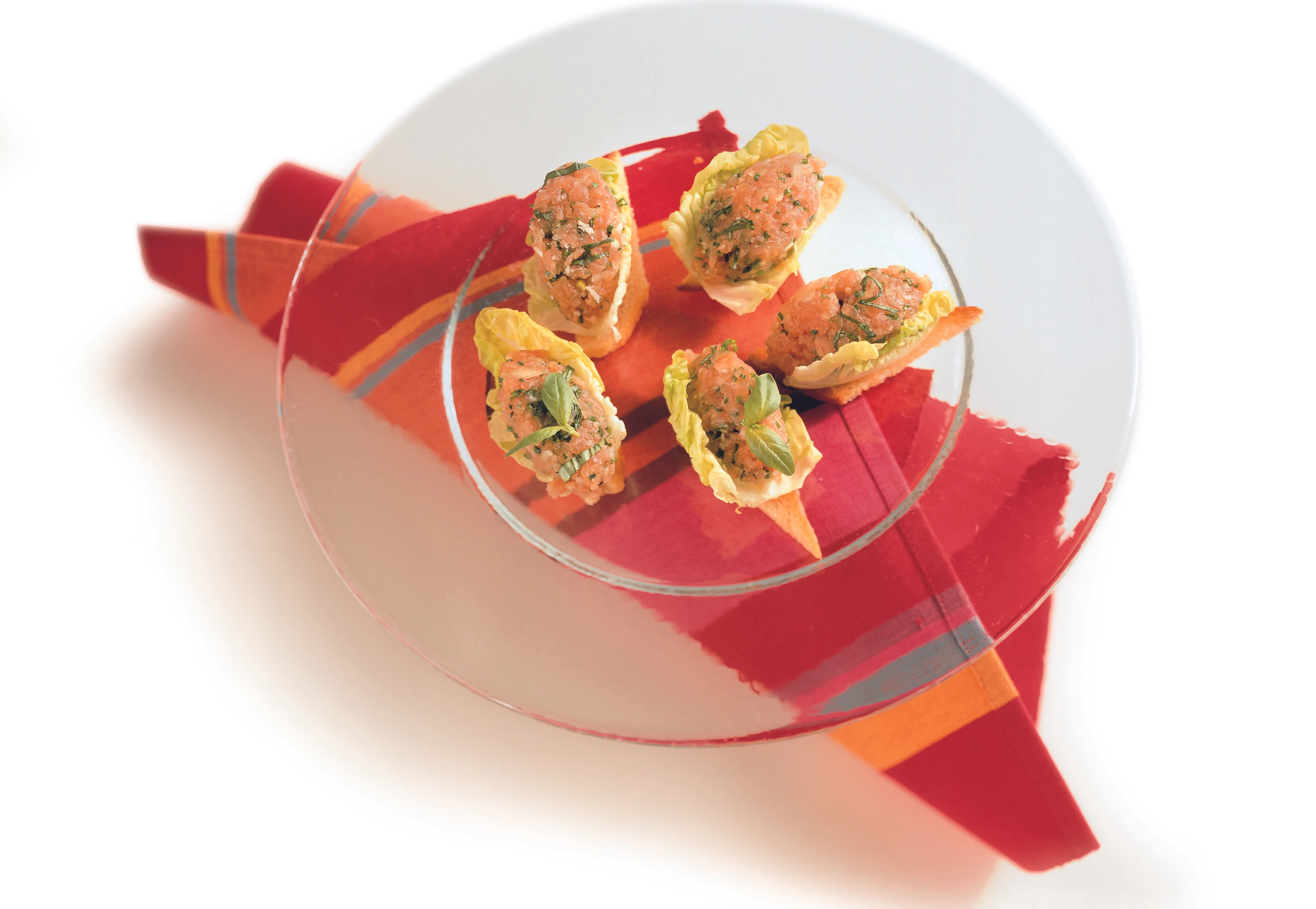 Aus der Fischmasse mit 2 Löffeln 5 Nockerln formen. Brote mit Salatblättern und den Tartar-Nockerln belegen.