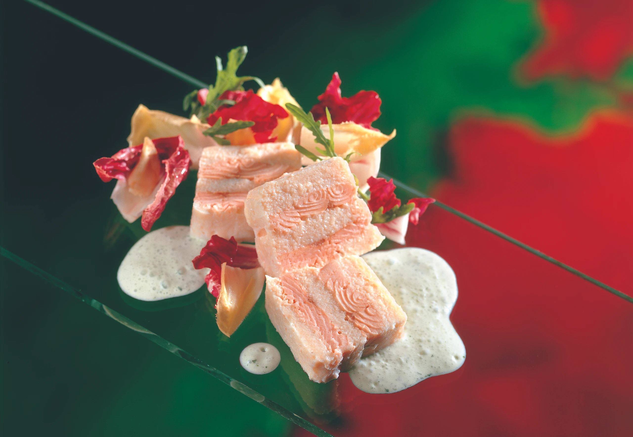 Lachsforellen-Terrine mit Rucolasauce