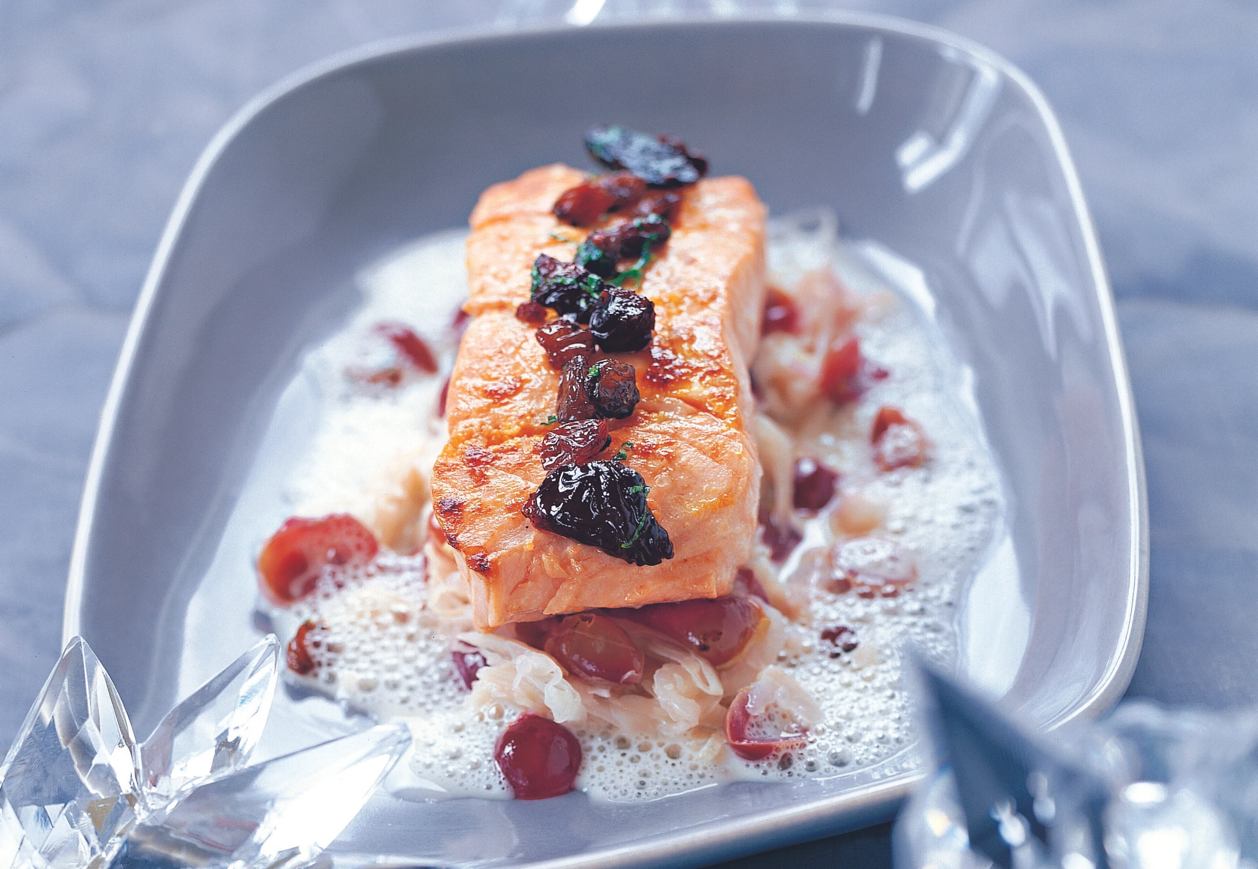 Lachsforellenfilet mit Rosinen-Pflaumenbutter