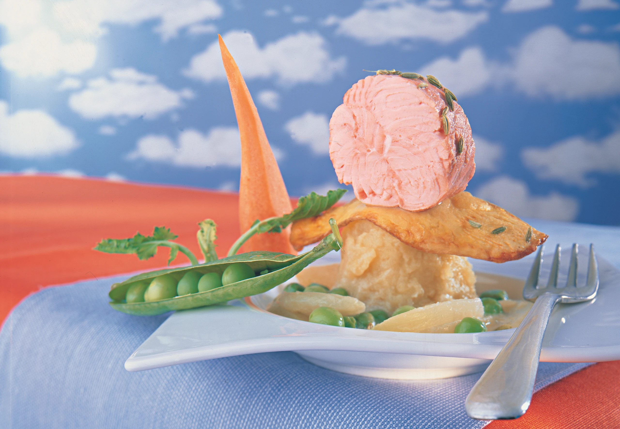 Lachsrolle mit Anis auf Kohlrabi-Erbsengemüse