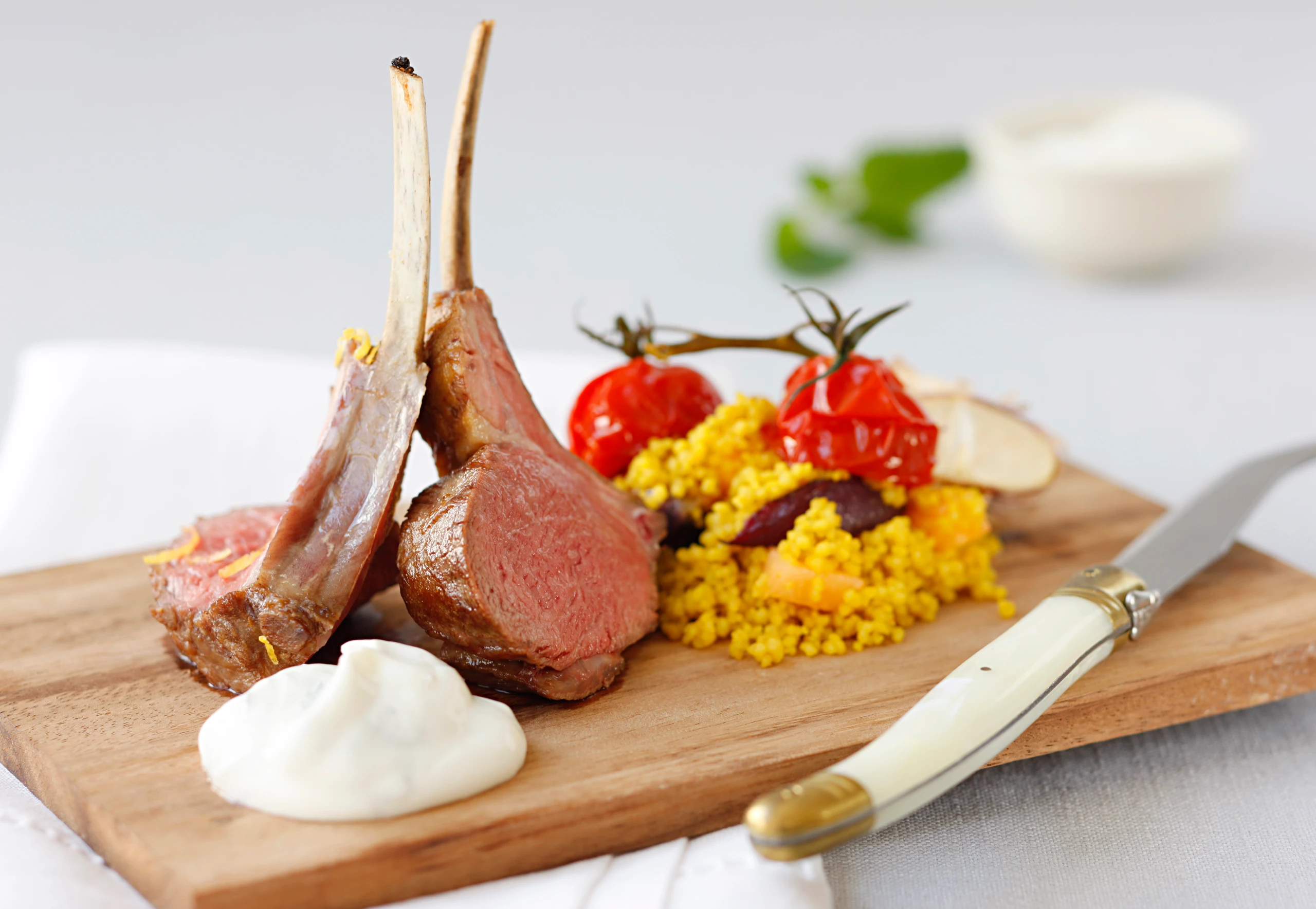 - Paradeiser und Zwiebeln aus dem Rohr nehmen und in den Couscous mischen. Lamm in Scheiben schneiden, mit Couscous und Joghurt anrichten, eventuell mit abgeriebener Zitronenschale garnieren.