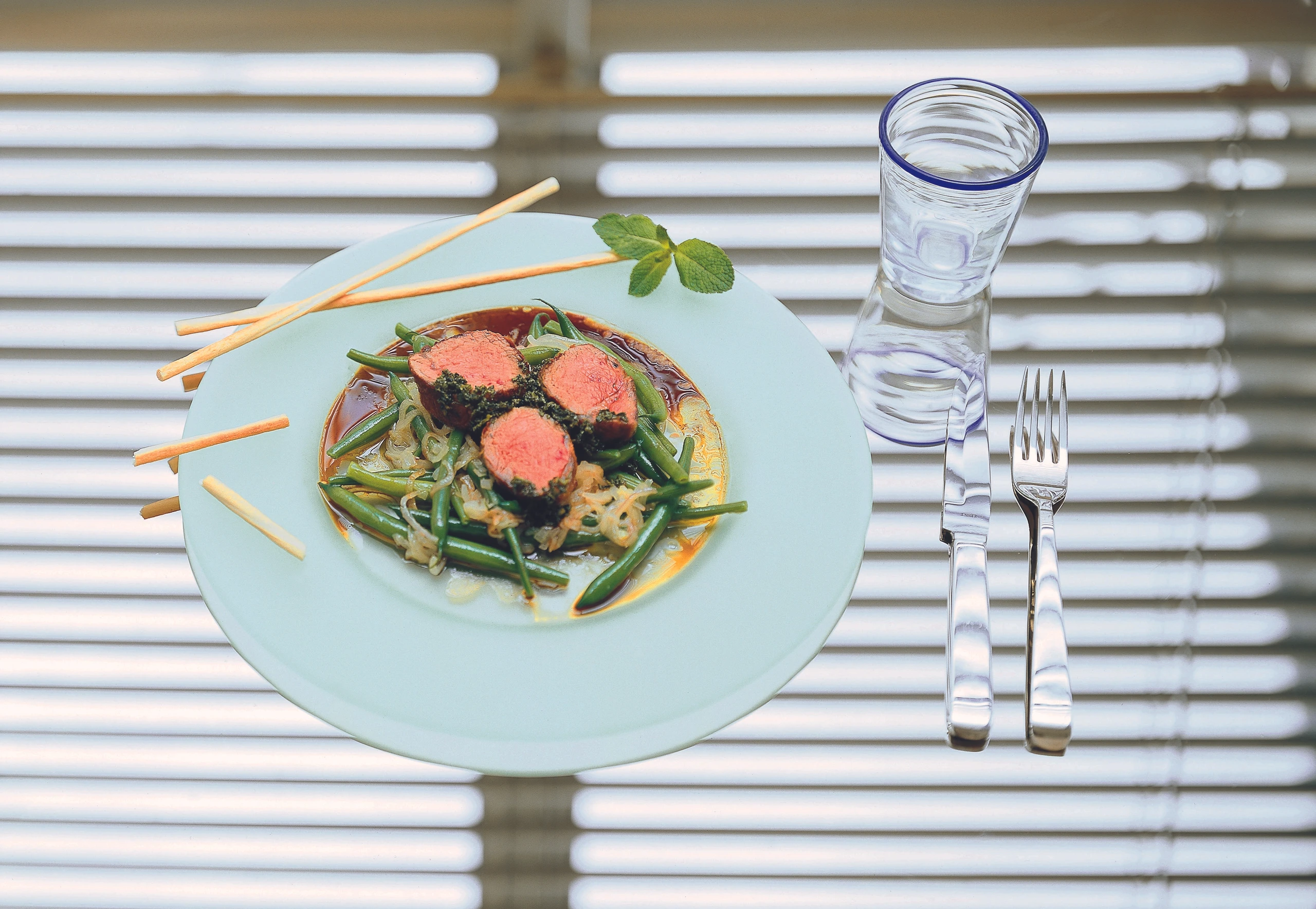 Lammfilets auf Fisolengemüse mit Minze-Vinaigrette