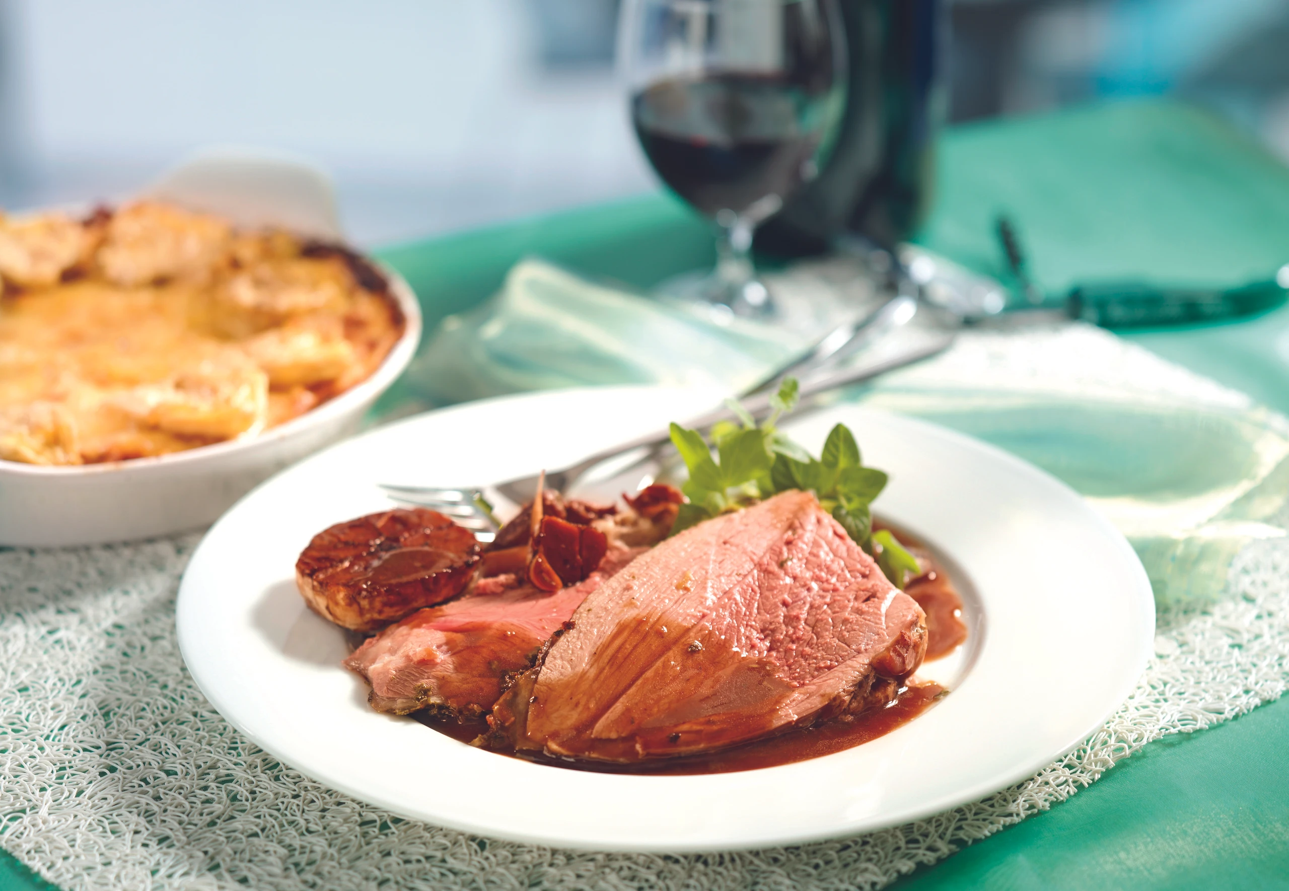 Lammkeule mit Kräuterkruste und Erdäpfelgratin