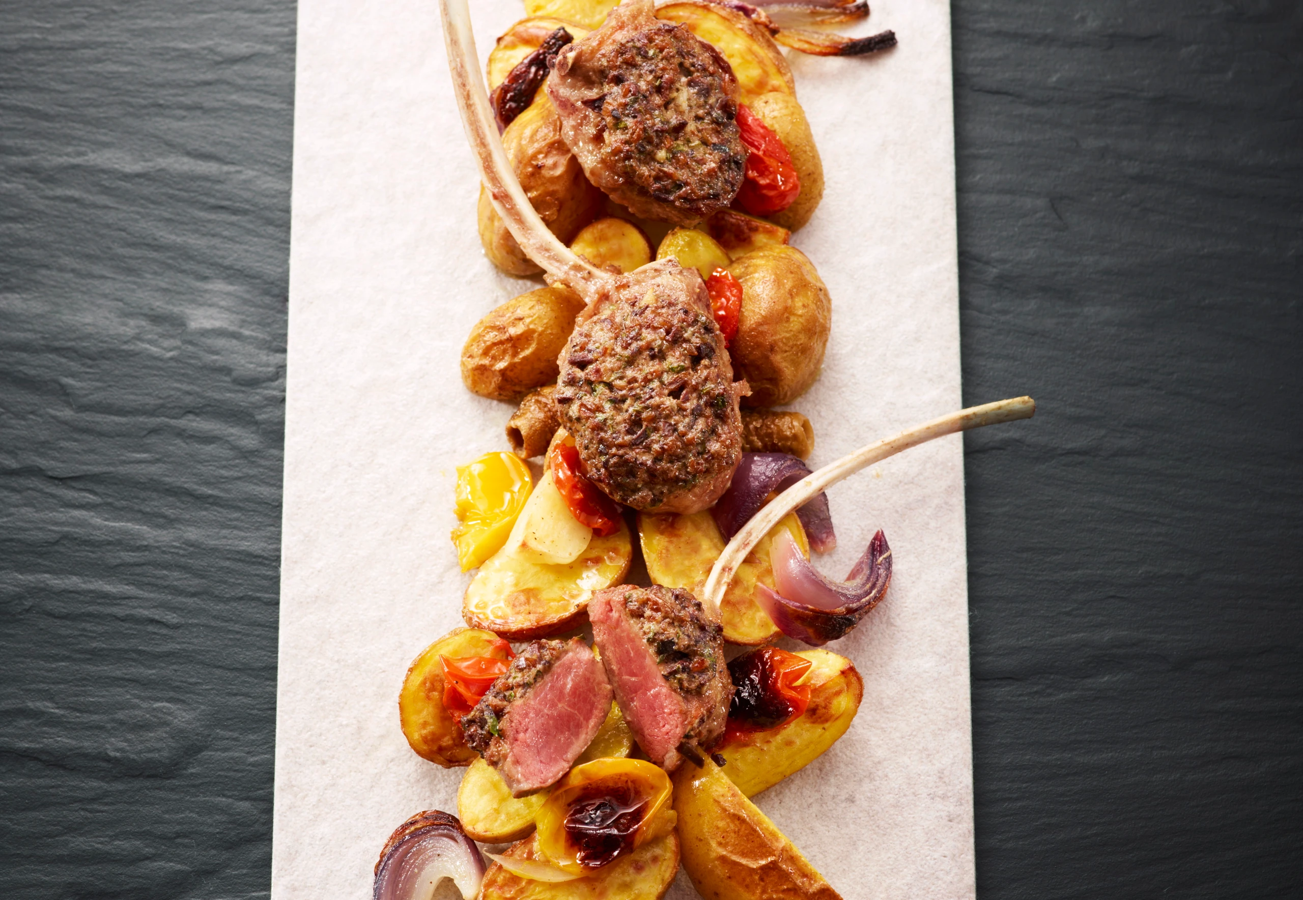 Lammkotelettes mit Oliven-Kräuterkruste