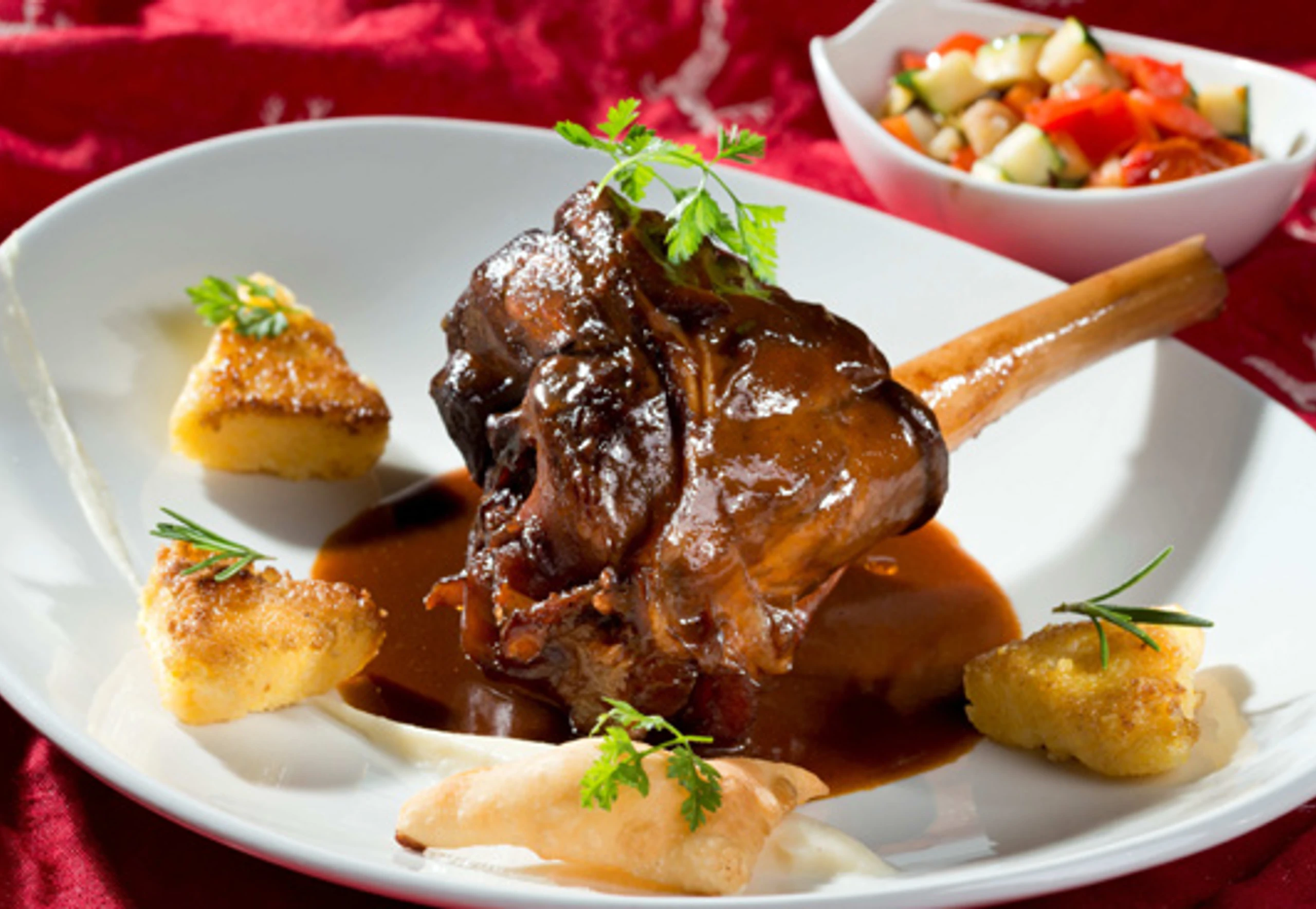 Lammstelze mit Gemüsegröstl und Polentaschnitte