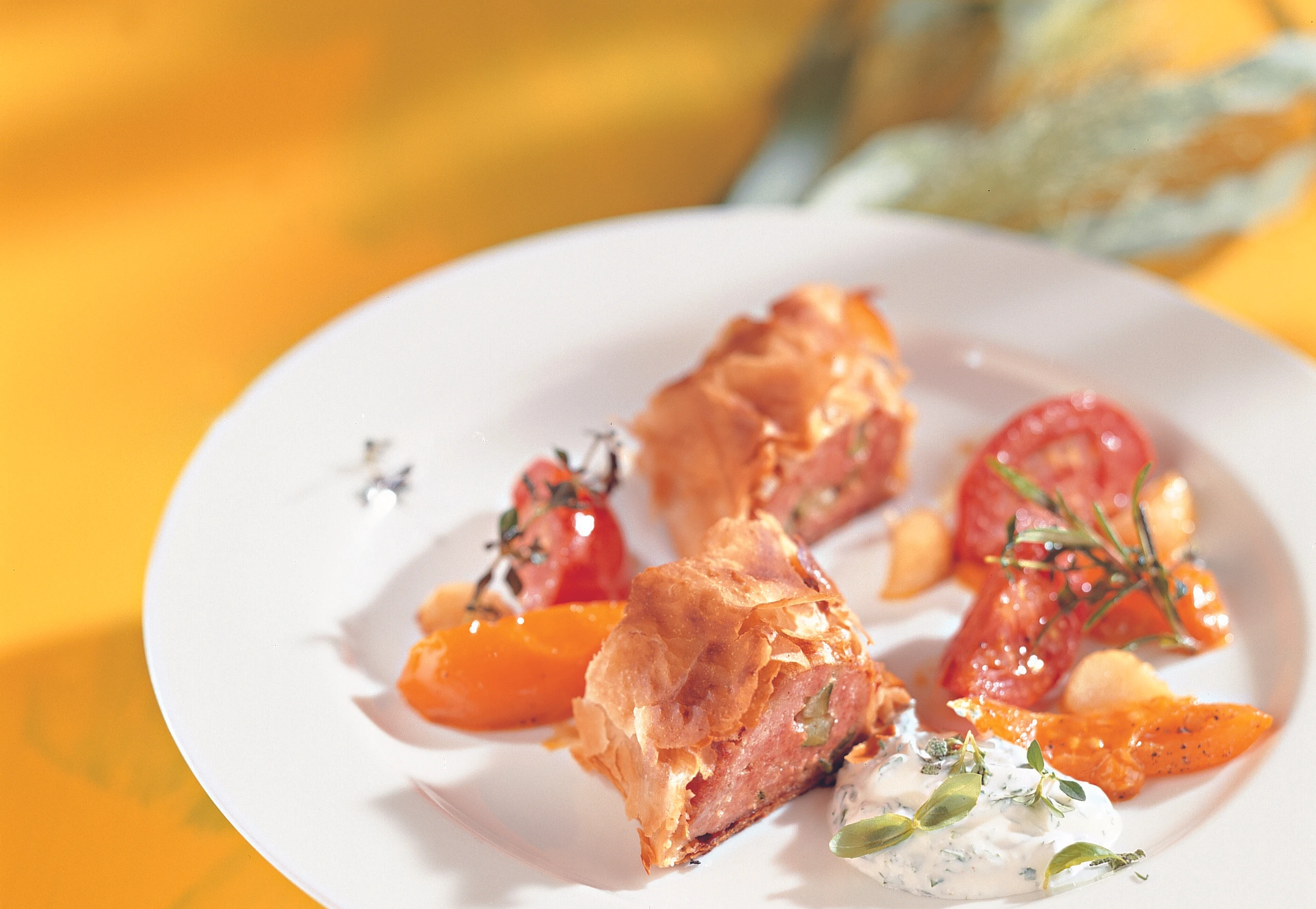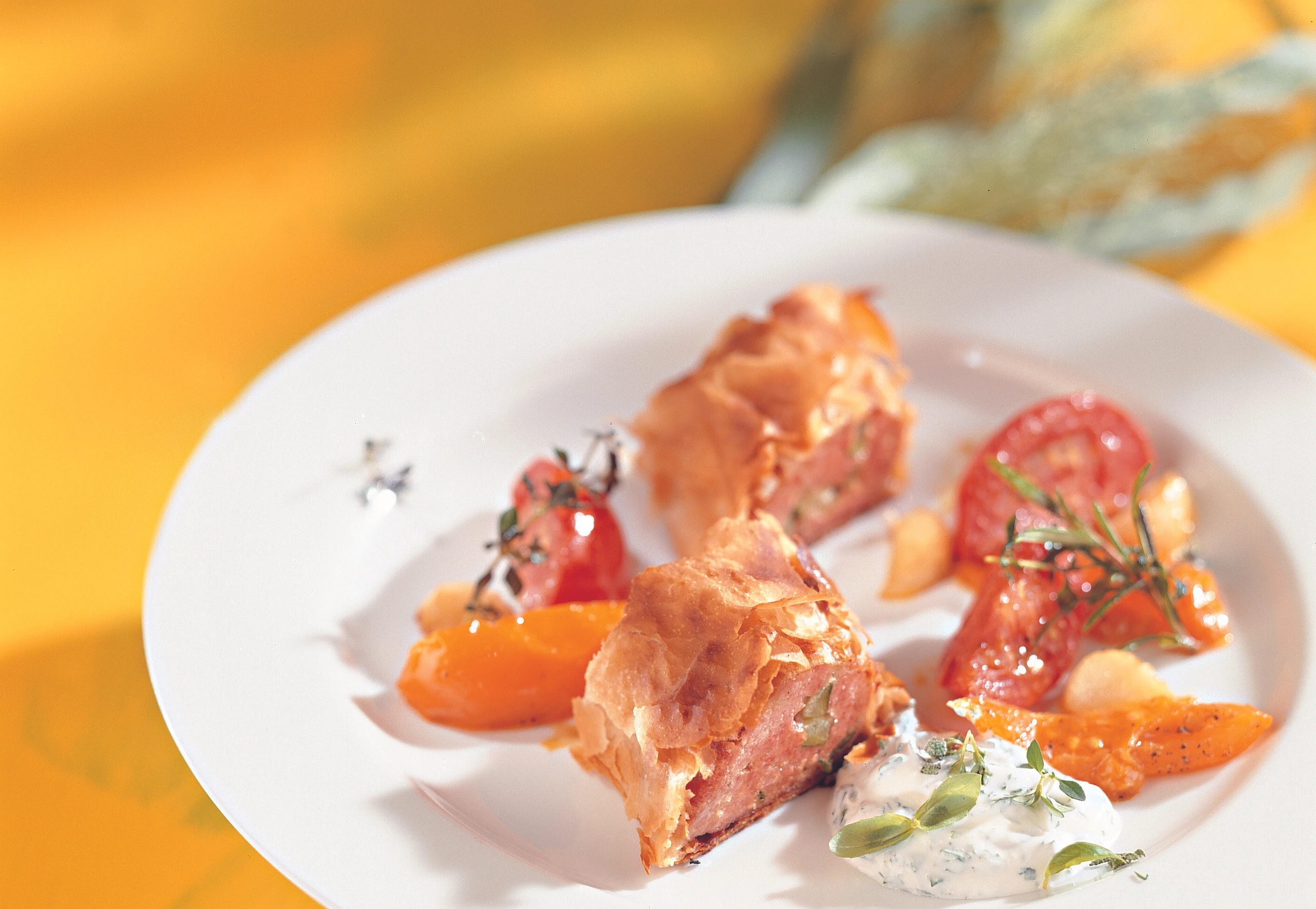 Lammstrudel mit gebratenen Paradeisern