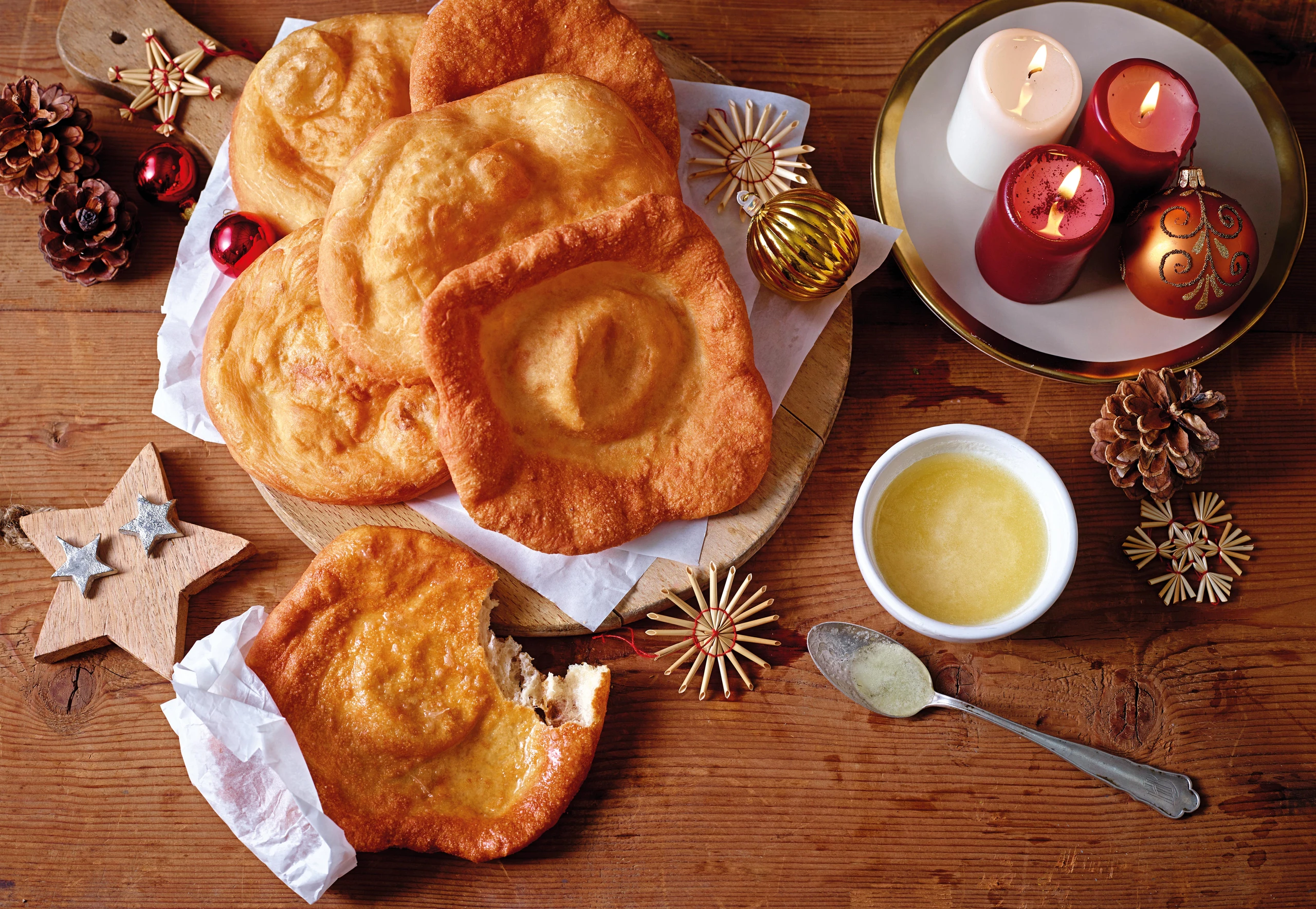 Ca. 3 Finger hoch Öl erhitzen. Teigscheiben darin in mehreren Arbeitsgängen beidseitig goldbraun backen. Lángos herausheben, auf mehreren Lagen Küchenpapier abtropfen lassen und warm stellen. Vor dem Servieren mit Knoblauchöl bestreichen.