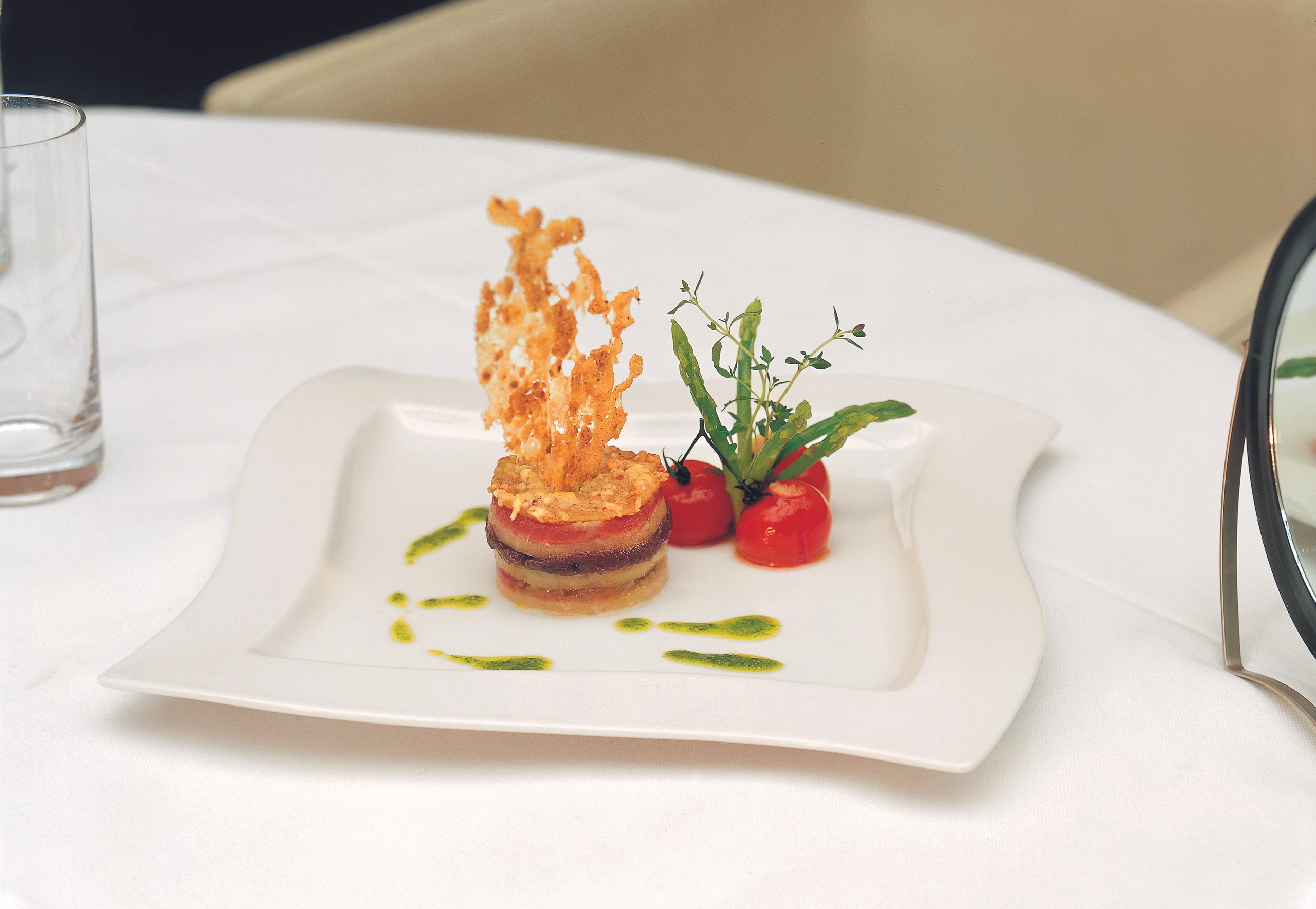 Für die Garnitur Spargel in 3 EL Olivenöl bissfest braten, aus der Pfanne nehmen. Im Bratrückstand Cocktailtomaten rundum kurz anbraten, dabei sollte die Haut ein wenig aufspringen.