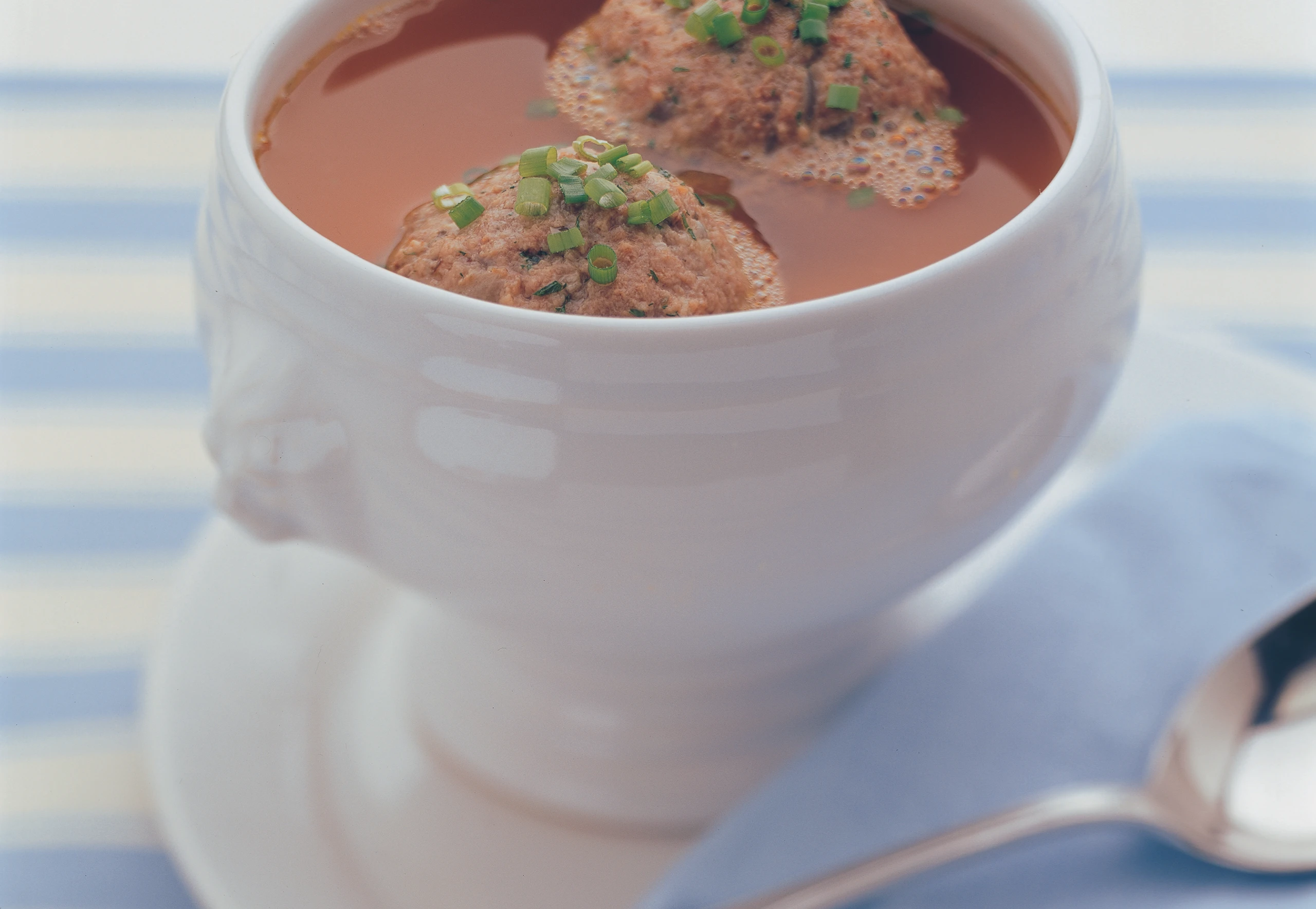 Zum Anrichten Suppe erhitzen, Schnittlauch fein schneiden. Knödel aus dem Wasser heben, abtropfen lassen und mit der Suppe anrichten, mit Schnittlauch bestreuen.