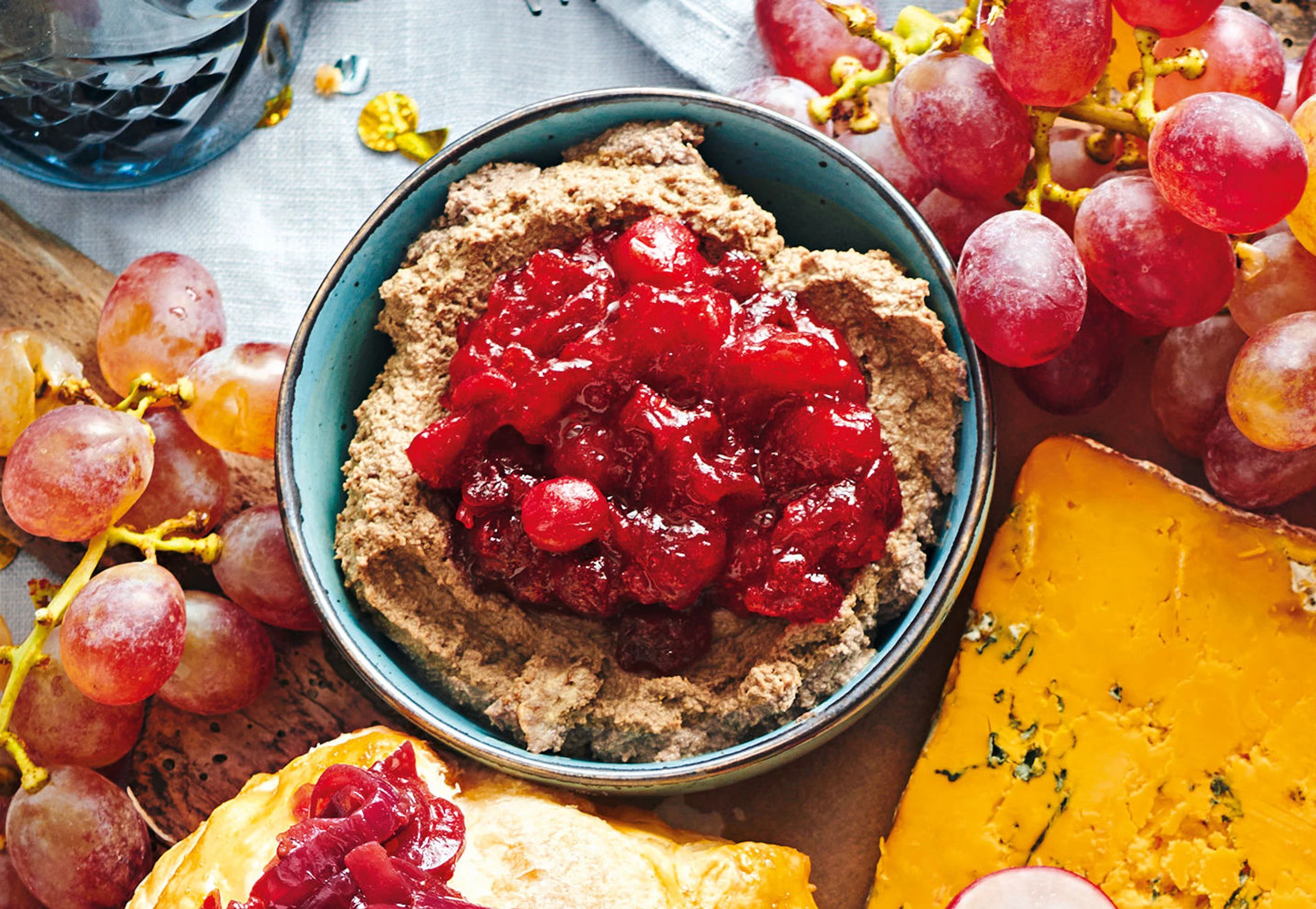 Für die Pastete Schalotten schälen und klein schneiden. 1 EL von der Butter in einem Topf aufschäumen. Schalotten darin anschwitzen. Leber zugeben und ca. 5 Minuten rösten. Mit Wein ablöschen und zugedeckt ca. 15 Minuten köcheln. Vom Herd nehmen und auskühlen lassen. Mit Weinbrand und übriger Butter fein pürieren. Mit Salz und Pfeffer abschmecken. Leberpastete in ein Gefäß füllen und kalt stellen.