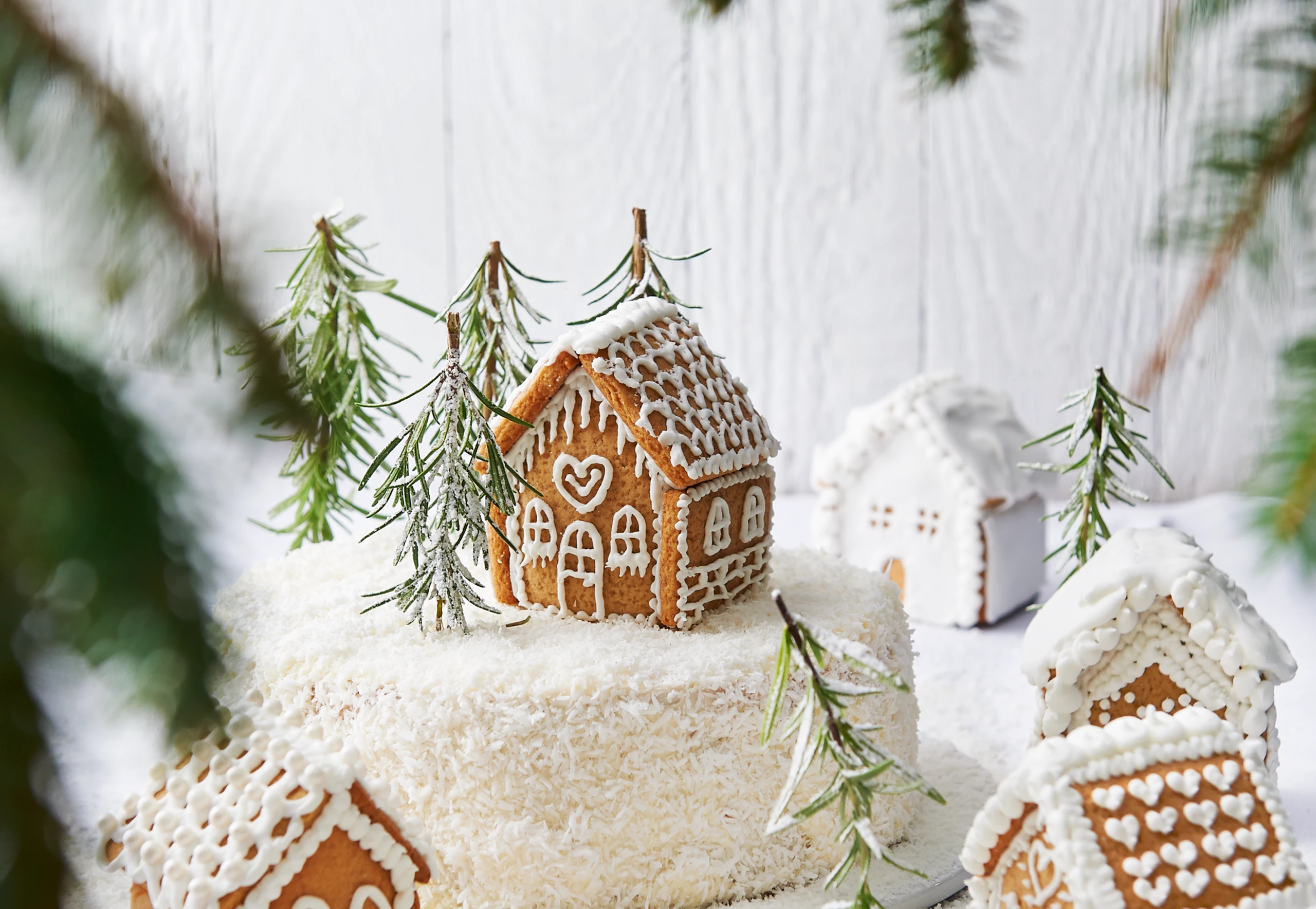 Für die Glasur alle Zutaten ca. 5 Minuten cremig mixen. Glasur in ein Stanitzel füllen und die Bauteile damit verzieren. Glasur trocknen lassen. Teile mit der restlichen Glasur zu einem Haus zusammenkleben.