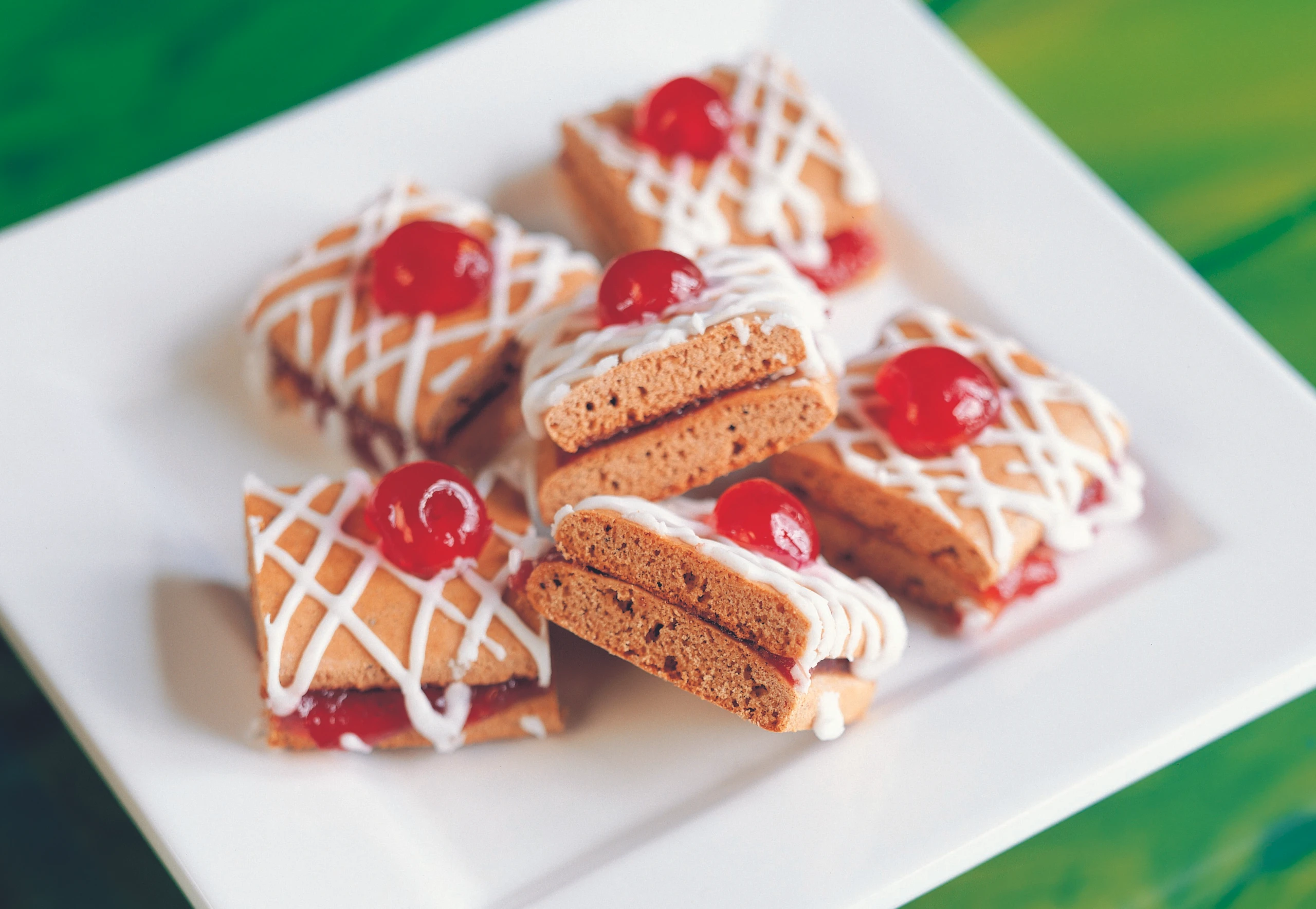 Marmelade unter Rühren erwärmen, 3 Teigstreifen damit bestreichen. Übrige Streifen darauf legen, andrücken und mit Frischhaltefolie zugedeckt ca. 1 Stunde kühlen.