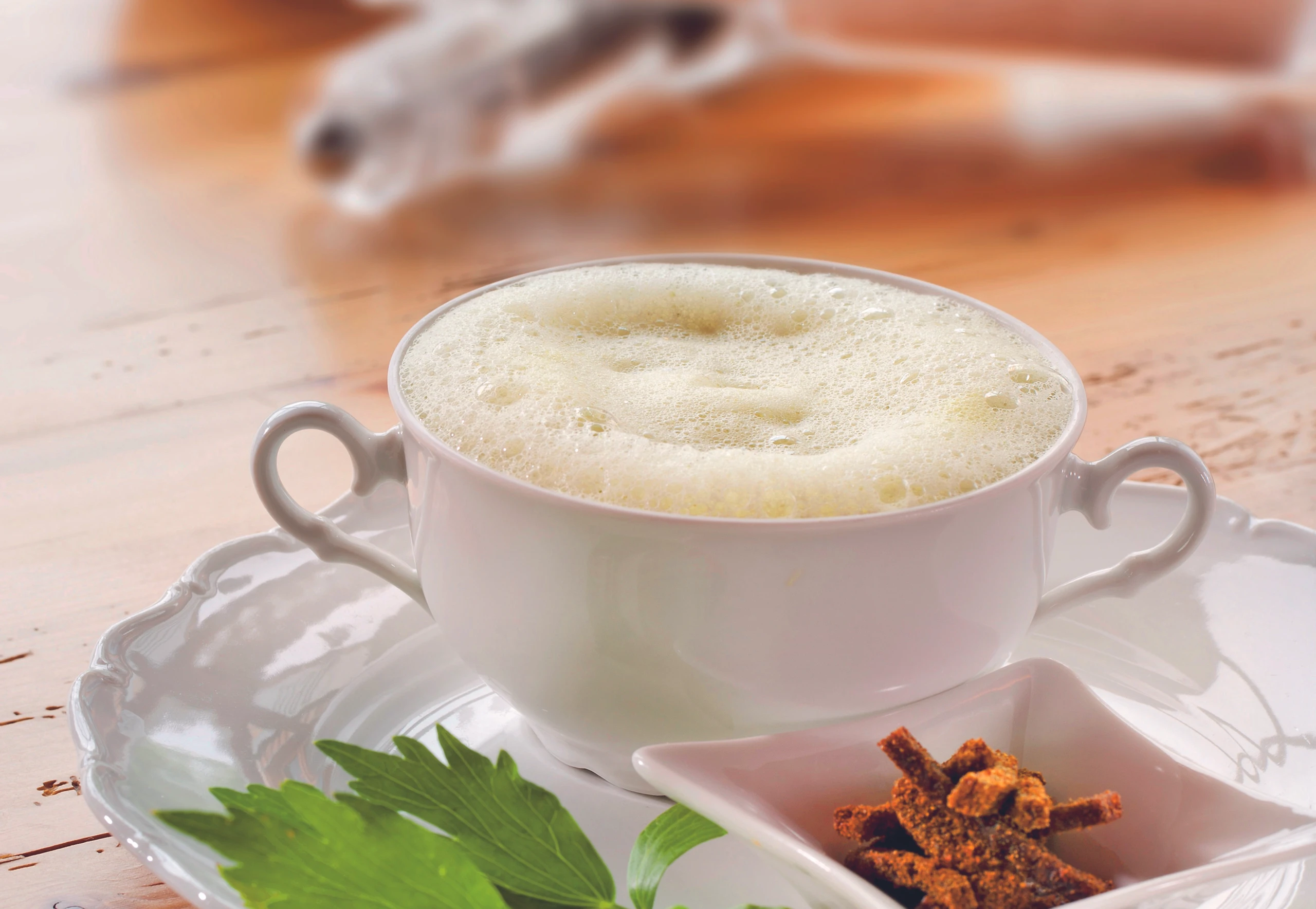 Liebstöckel-Selleriesuppe mit Pumpernickel