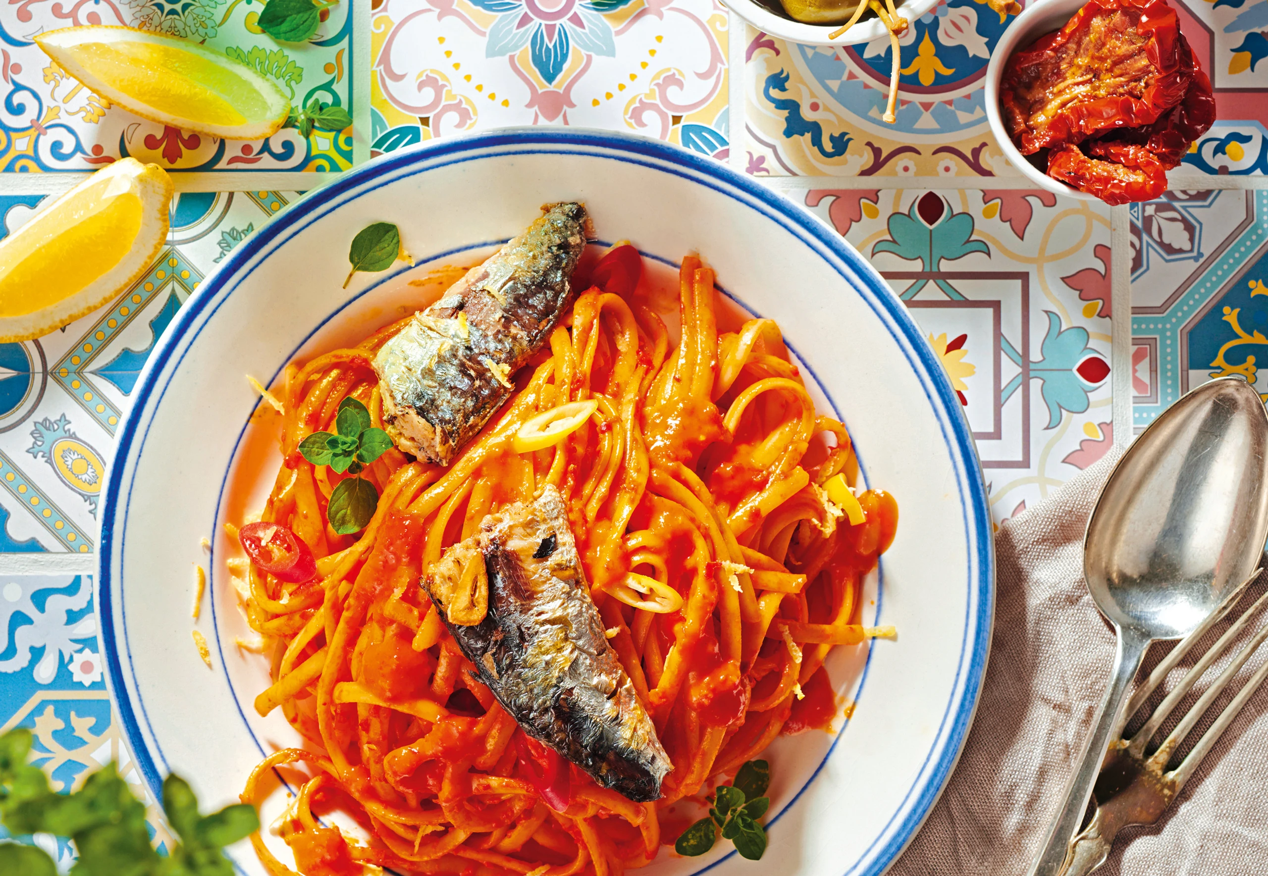 Pasta de Sardinhas: Portugiesische Linguine mit Paprikasauce und Sardinen