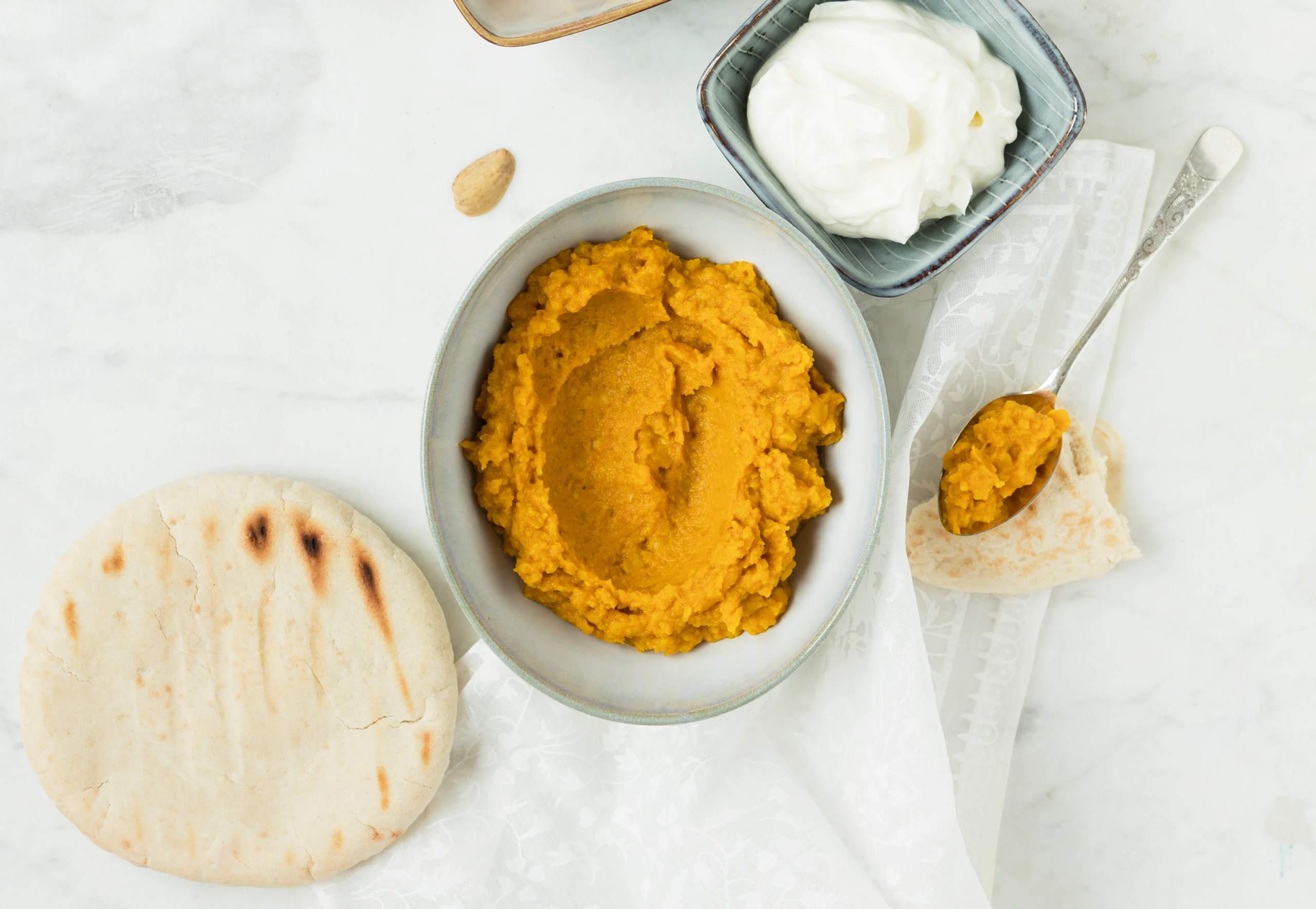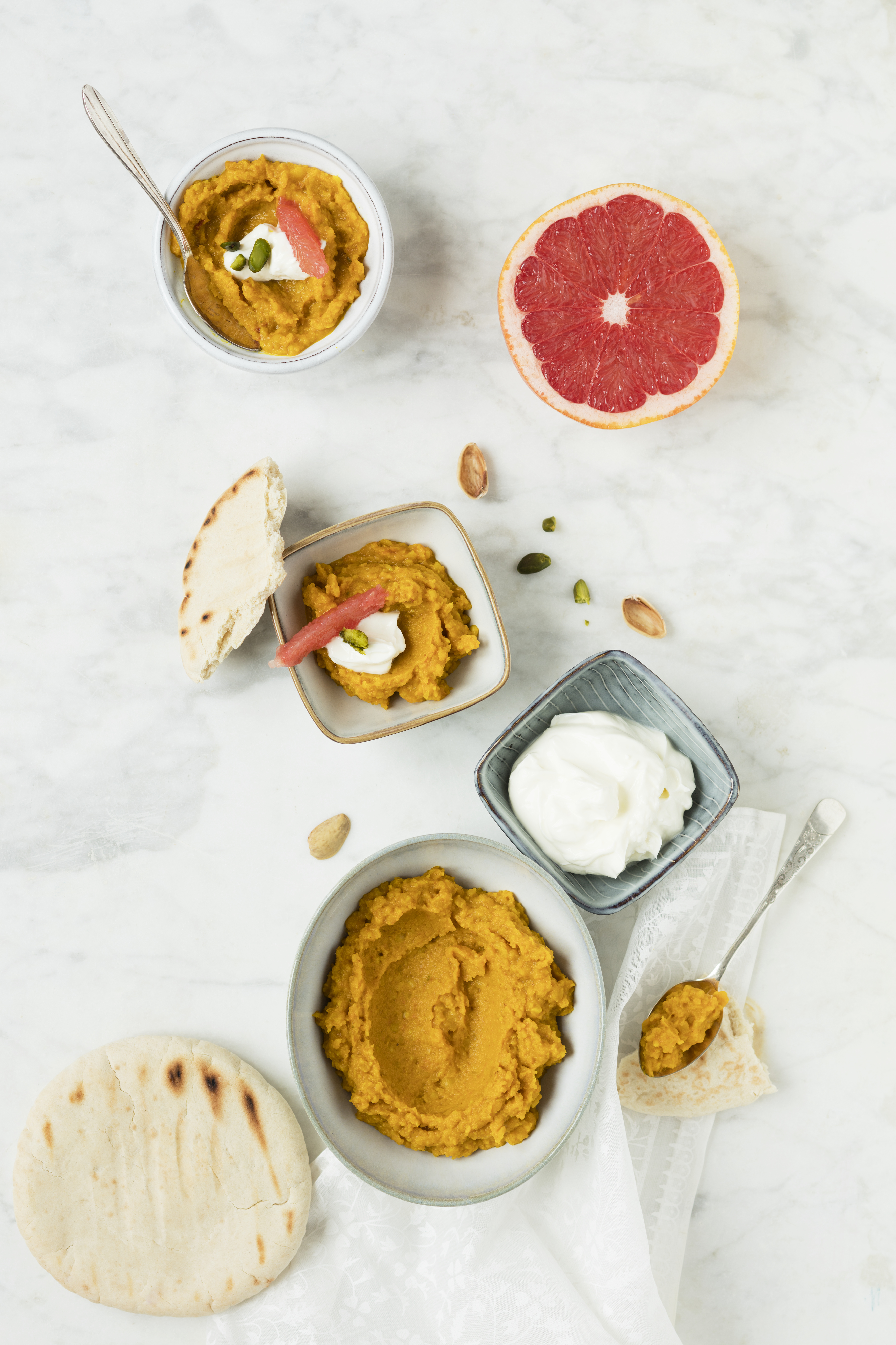 Linsen-Karotten-Creme mit Labneh und Grapefruit