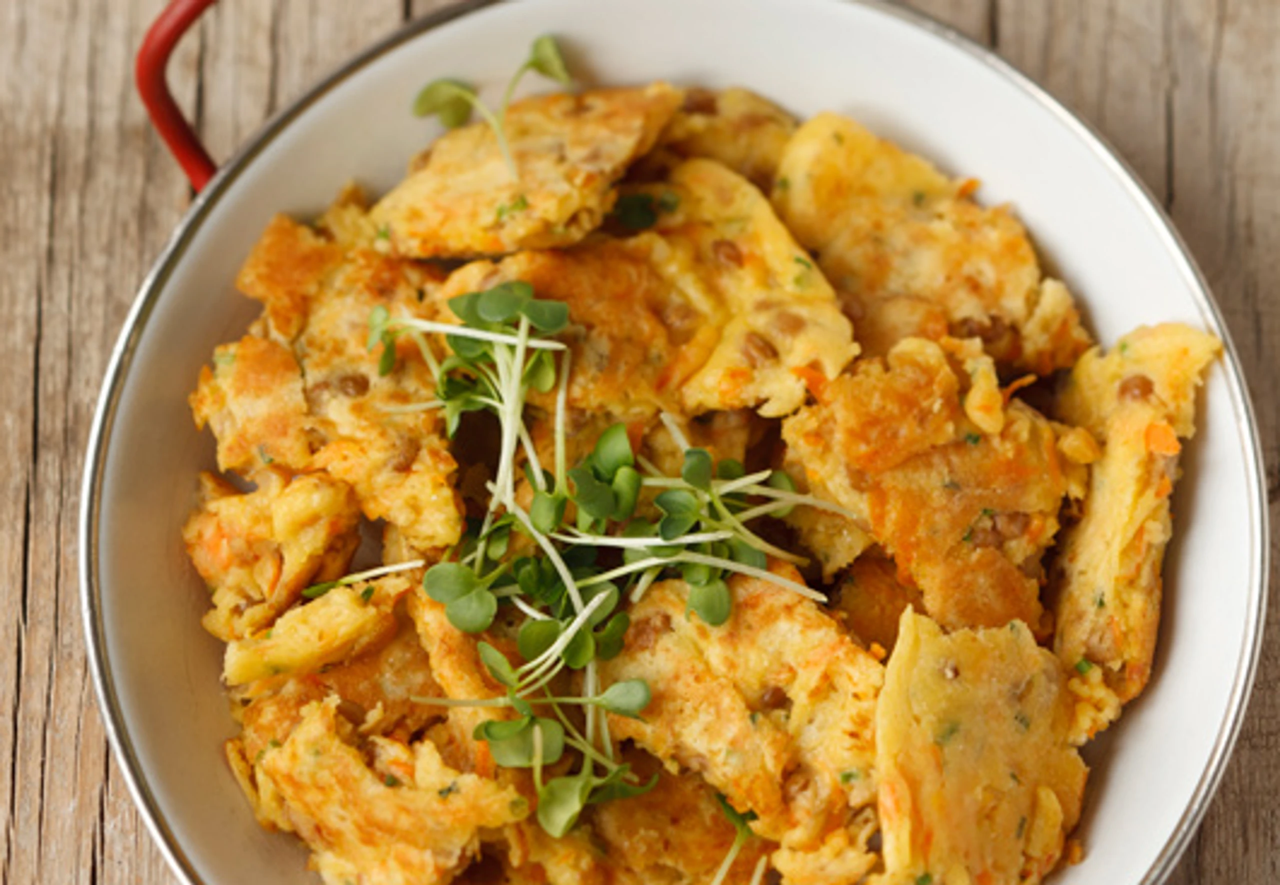 Linsen-Karotten-Schmarren mit Senfsauce