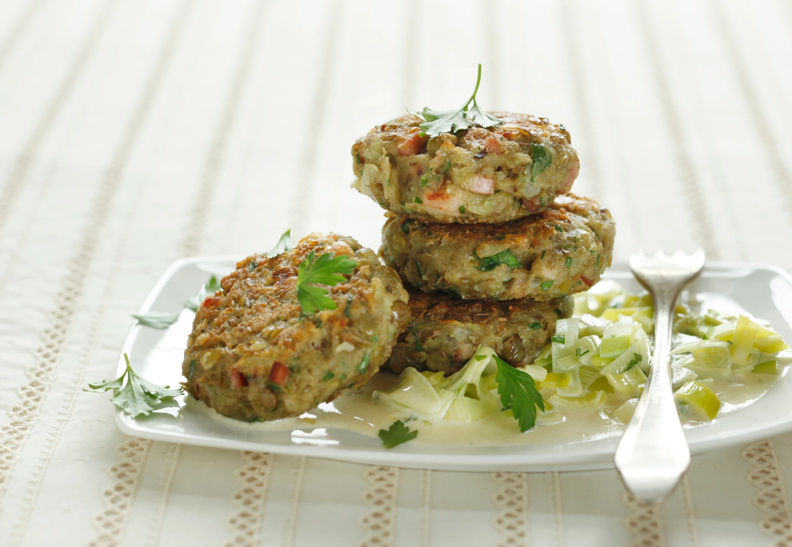Aus der Linsenmasse 8 Laibchen formen und im restlichen Öl beidseitig braten. Laibchen mit der Sauce anrichten und mit Petersilie garnieren.
