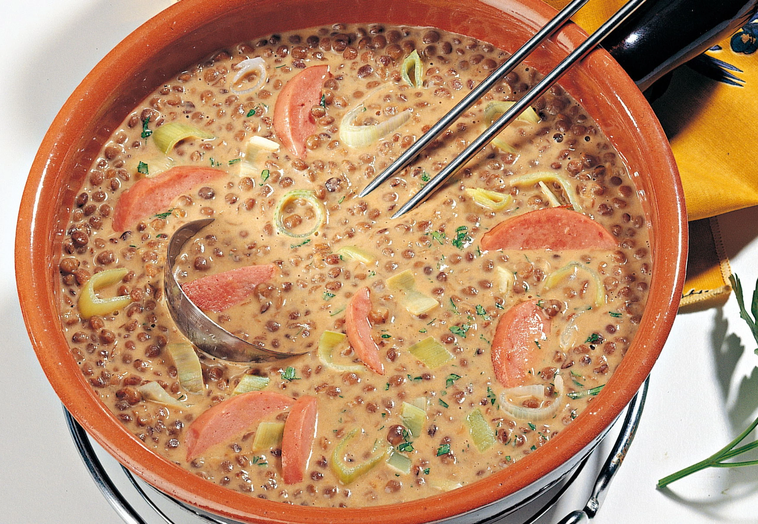 Linsenragout mit Wurst und Lauch