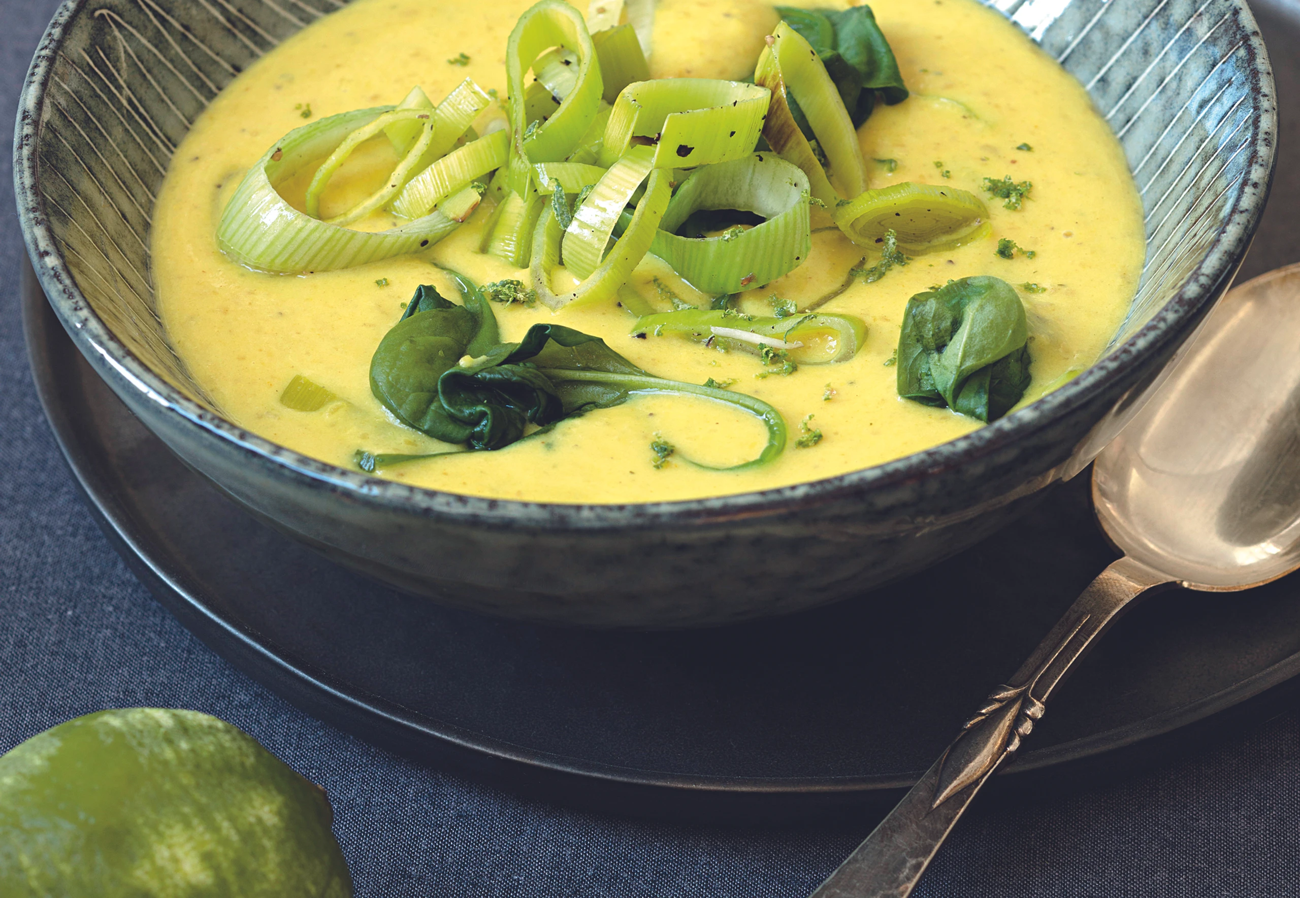 Suppe pürieren, mit Salz, Pfeffer und Limettensaft würzen. Lauch und Spinat untermischen. Suppe anrichten und mit Limettenschale bestreut servieren.