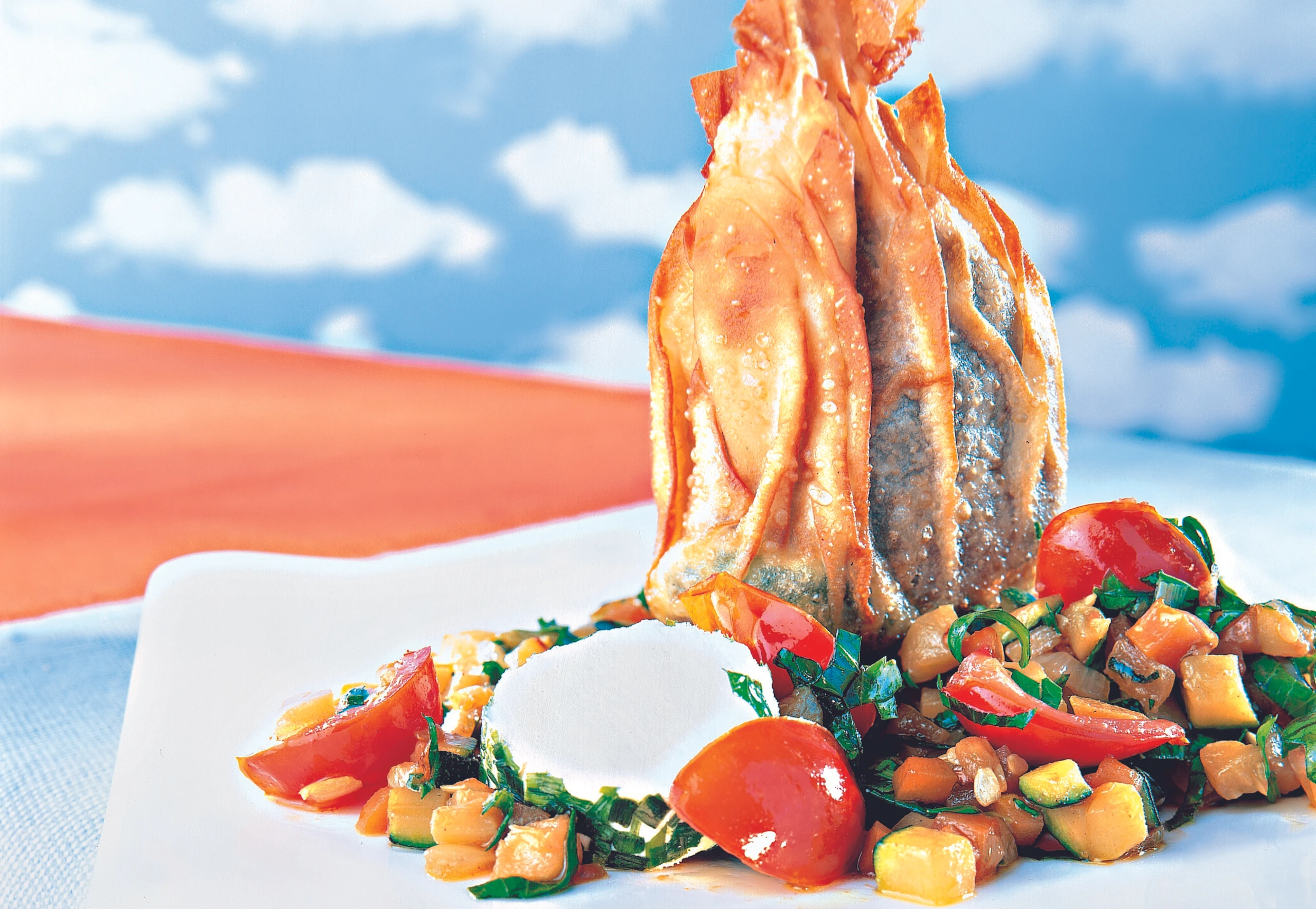 Maibock im Strudelblatt auf Gemüse-Brennnessel-Bolognese