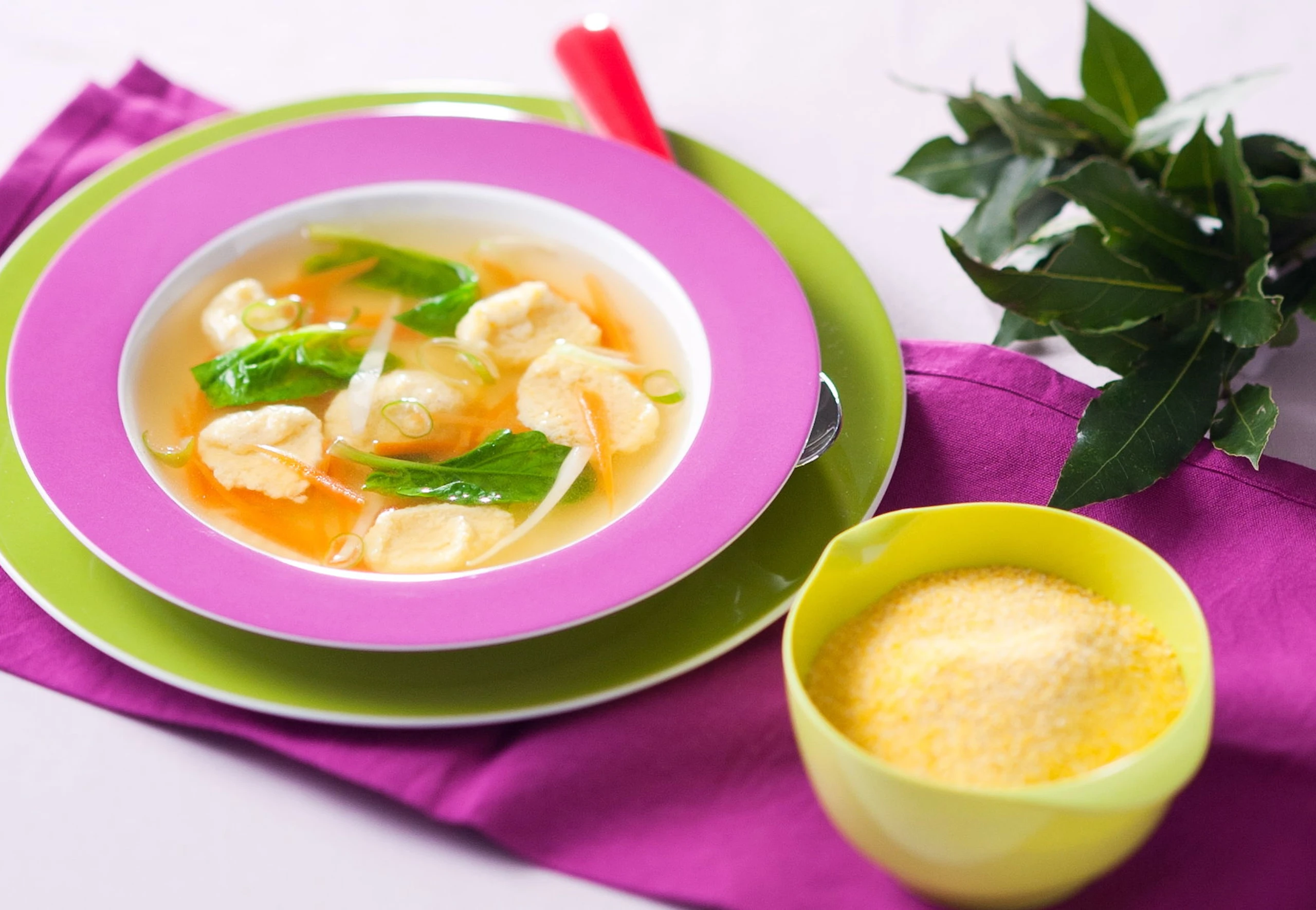 Maisnockerlsuppe mit Spinat