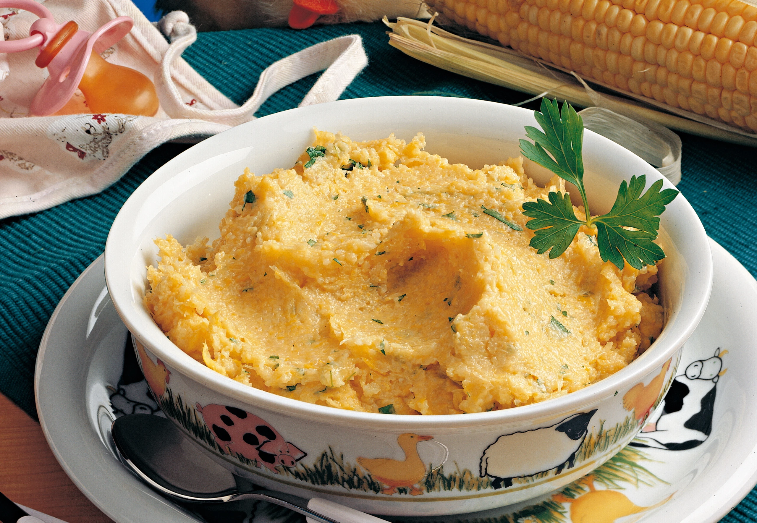 Mais feinst pürieren, Grieß einrühren und das Püree ca. 2 Minuten unter ständigem Rühren einkochen. Petersilie kurz vor dem Anrichten untermischen.
