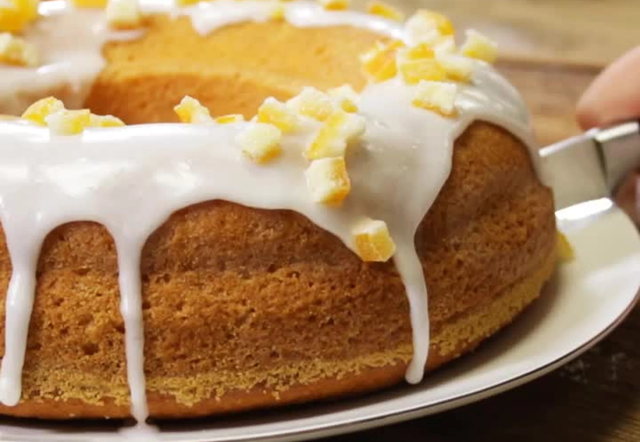 Für die Glasur Zucker und Mandarinensaft verrühren und über den Kranz träufeln. Aranzini in kleine Stücke schneiden und darüber streuen.