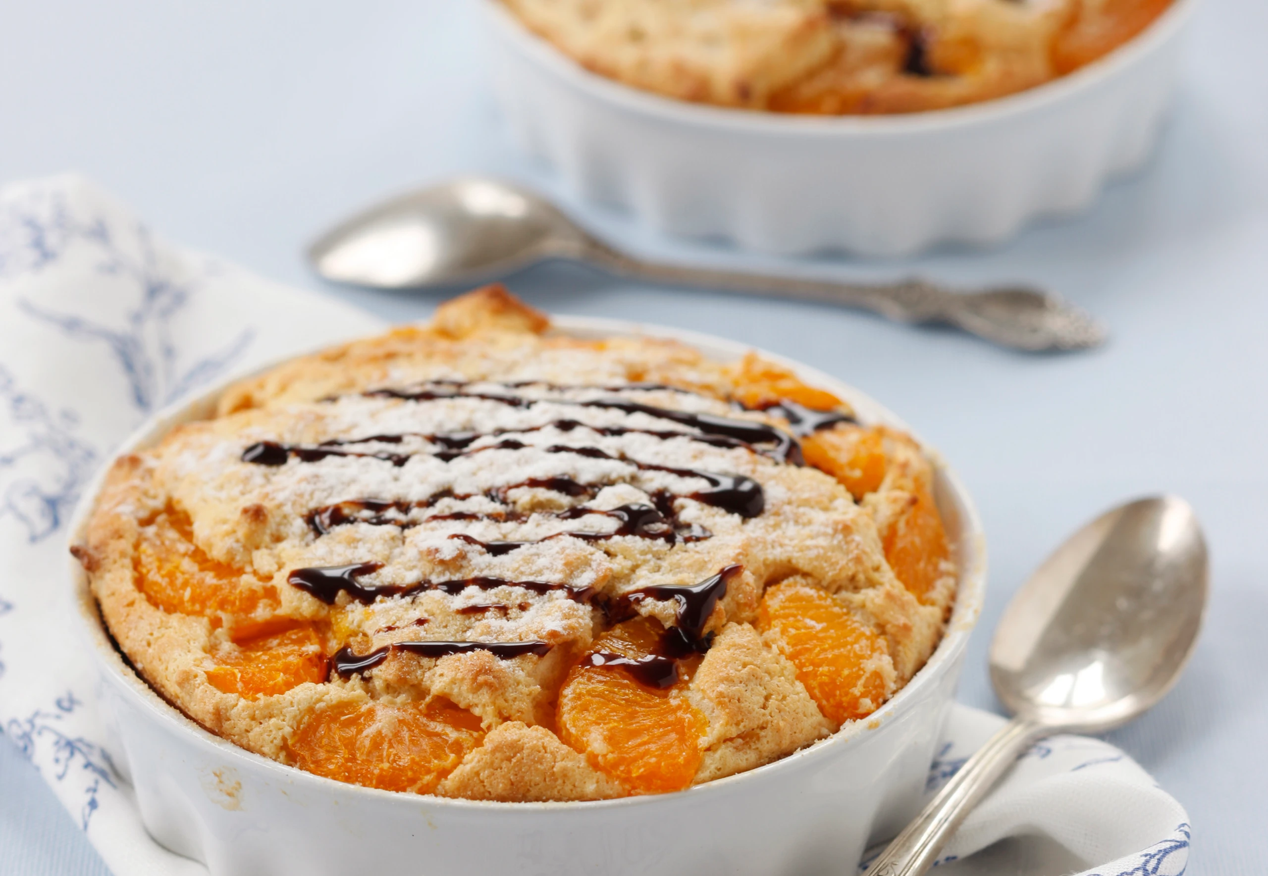 Masse in den Förmchen verteilen, mit den Mandarinen belegen und im Rohr (mittlere Schiene / Gitterrost) ca. 45 Minuten backen. Aufläufe aus dem Rohr nehmen, mit Staubzucker bestreuen und mit Schokolade garniert servieren.
