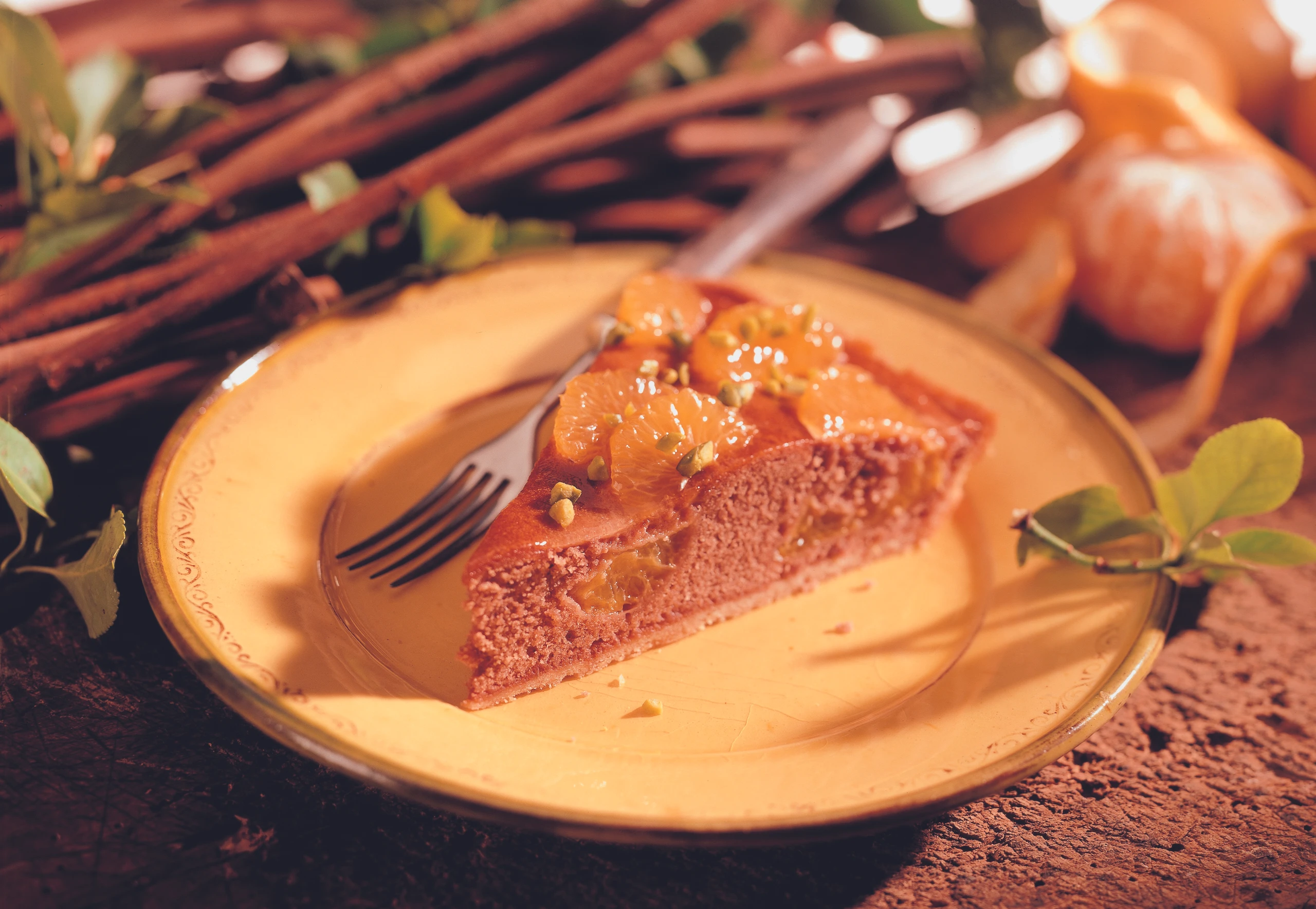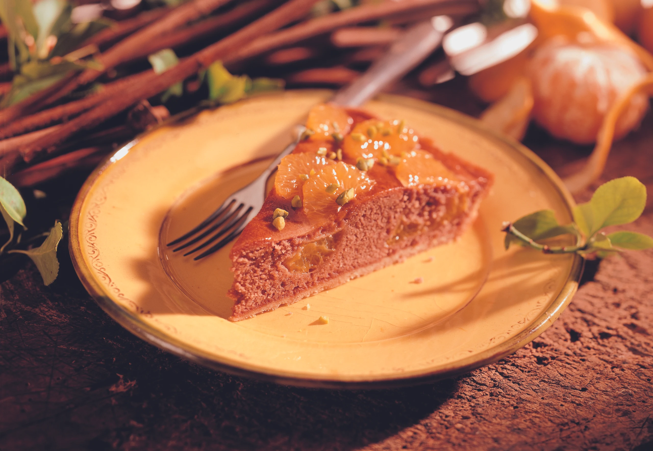 Für die Garnitur Mandarinen filetieren. Tortengelee nach Anleitung zubereiten. Tarte mit Marmelade bestreichen und mit den Mandarinenfilets belegen. Früchte mit Tortengelee bestreichen und mit Pistazien bestreuen. Gelee fest werden lassen.