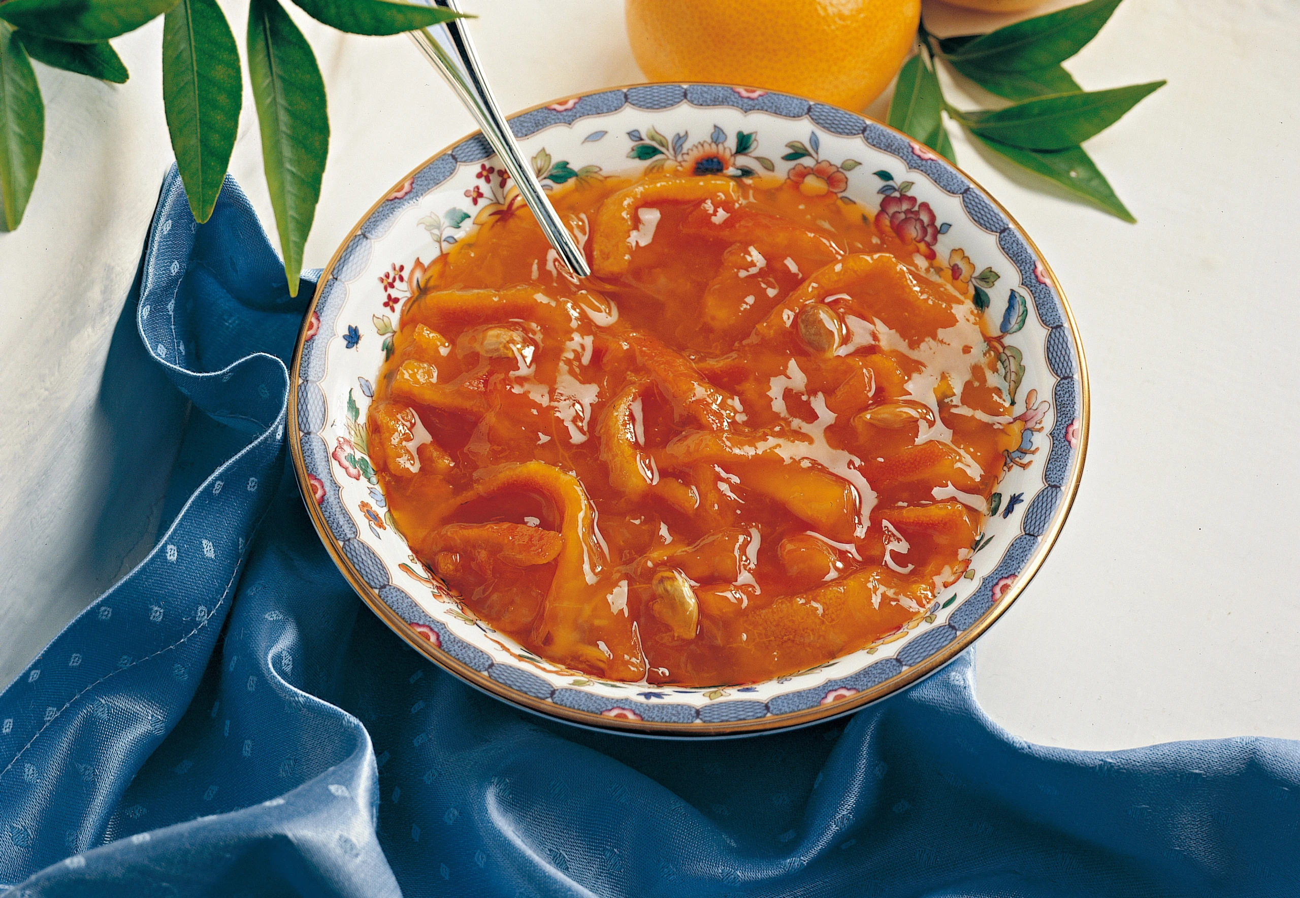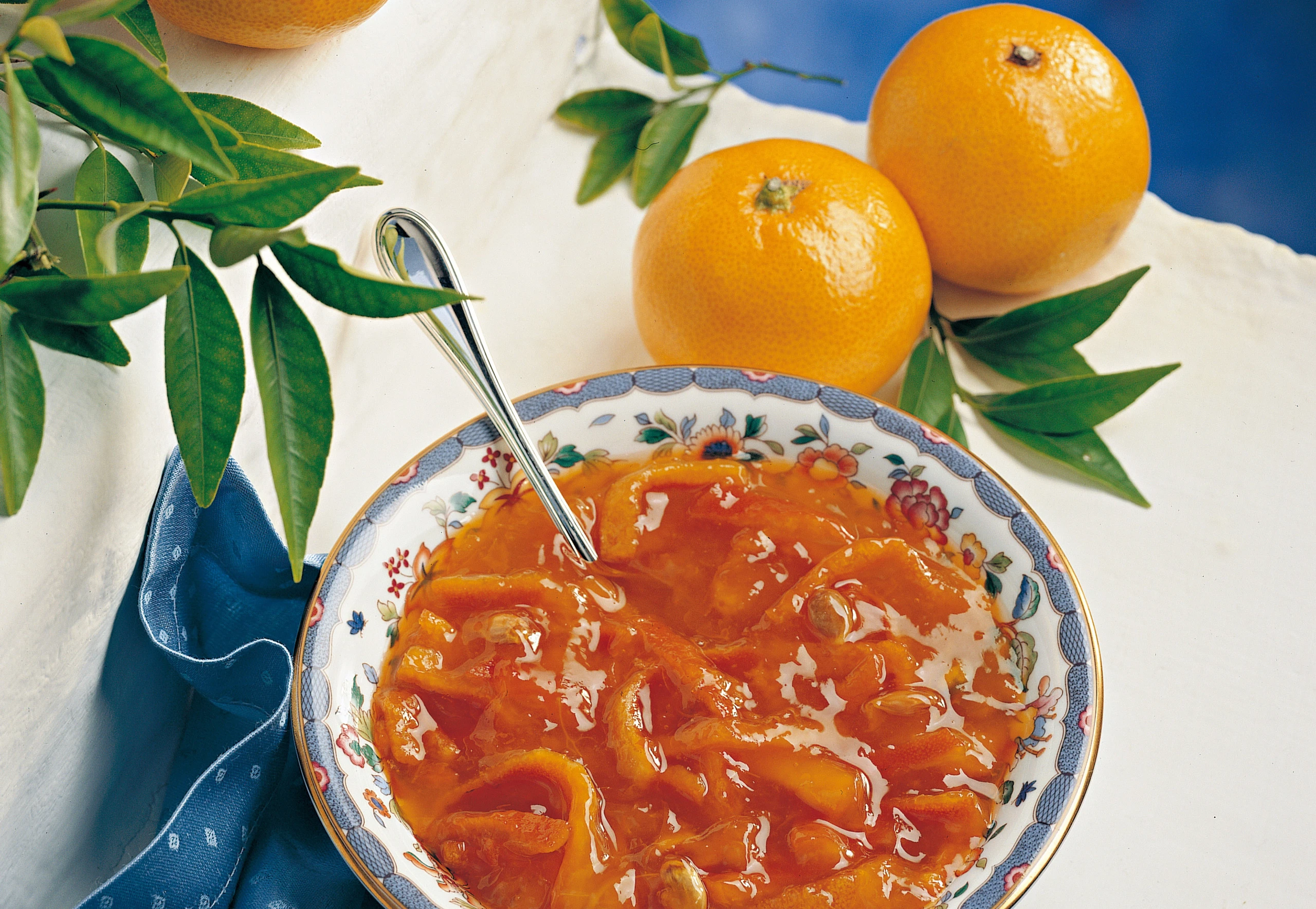 Aus den restlichen Mandarinen 1/2 l Saft pressen und mit Schalenstreifen, Fruchtfleisch sowie dem Geliermittel vermischen und aufkochen. Zucker zugeben und unter ständigem Rühren ca. 3 Minuten kochen.