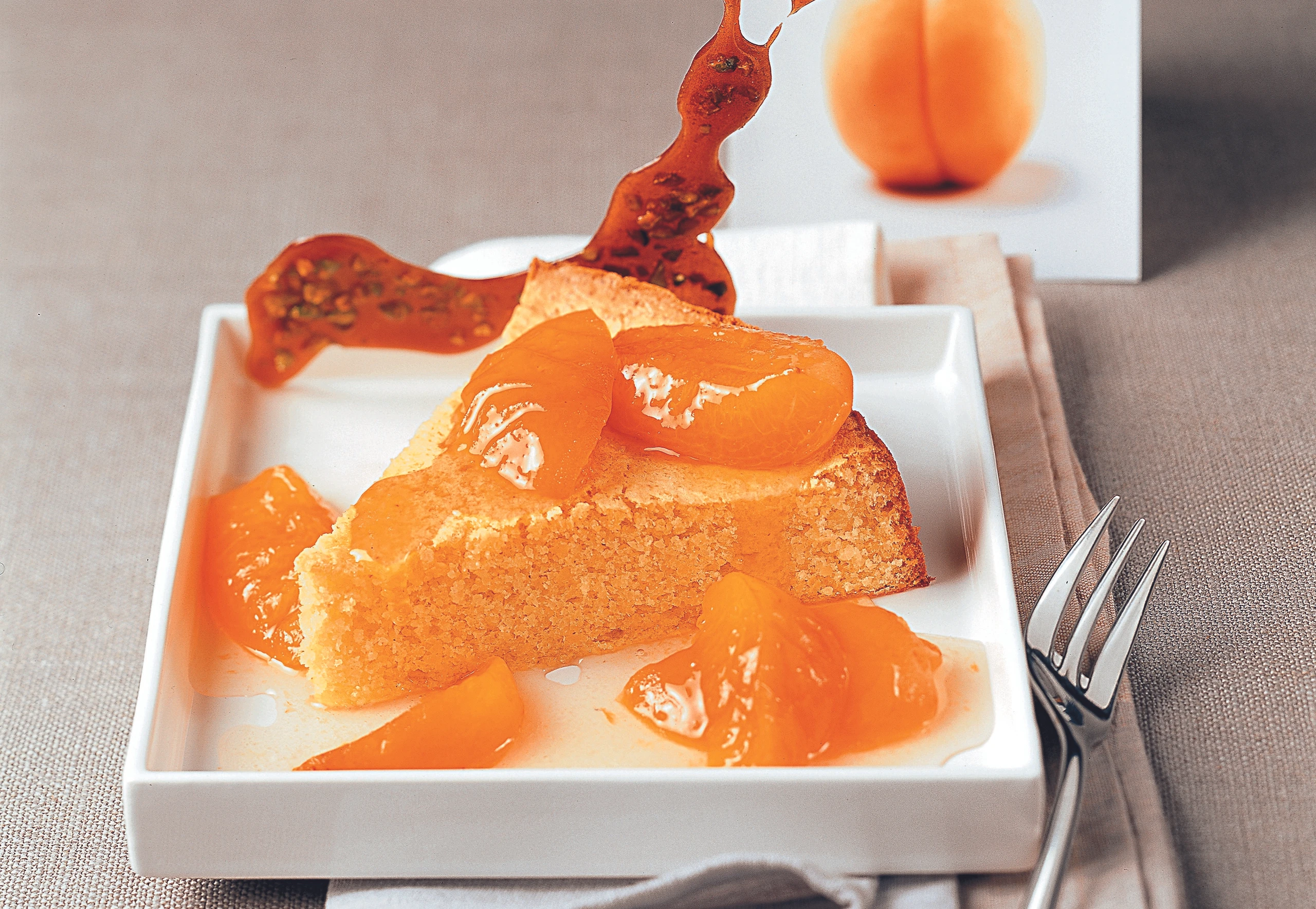 Marillen vierteln und entkernen. Wasser und Gelierzucker aufkochen, Marillen zugeben und zugedeckt bei schwacher Hitze einige Minuten ziehen lassen. Marillen überkühlen lassen und auf der Torte verteilen.