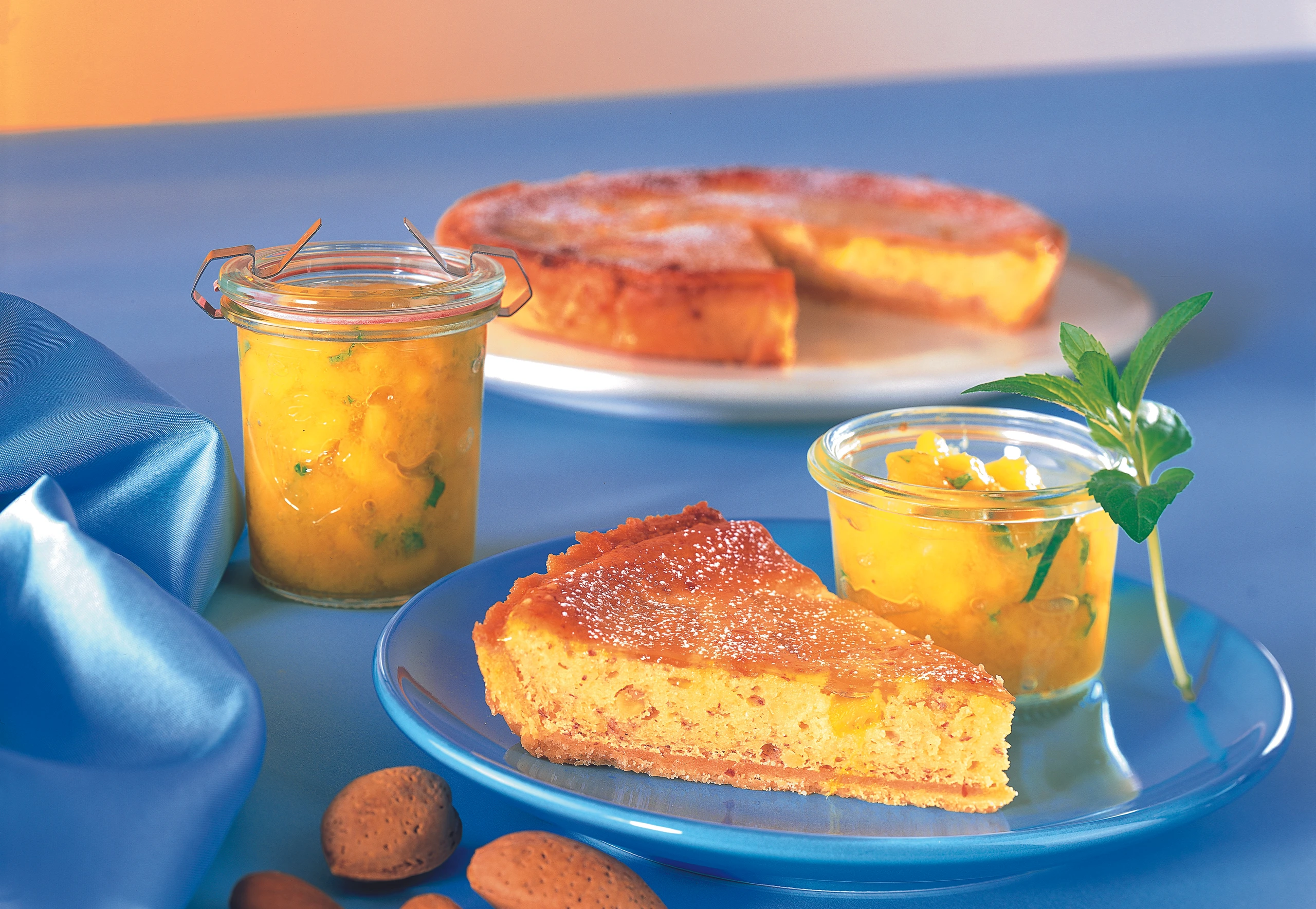 Mandel-Ricotta-Torte mit Mango-Minze-Chutney