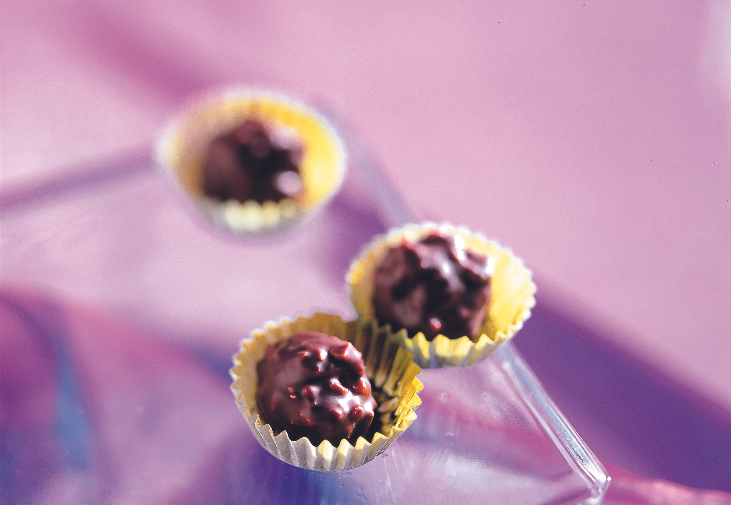 Kuvertüre temperieren. Die Krokantkugeln in die Kuvertüre tauchen, abtropfen und auf Backpapier trocknen lassen.