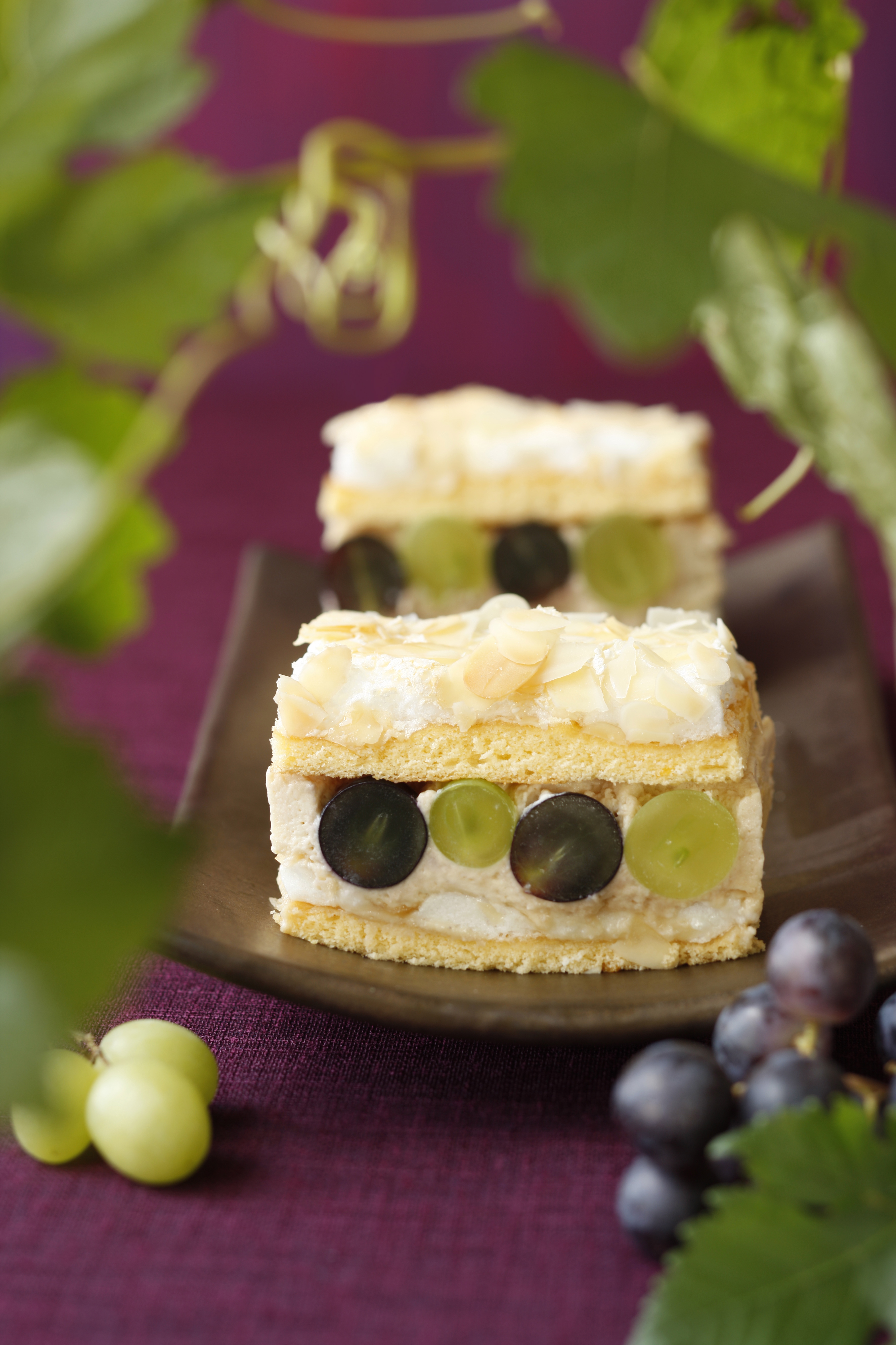 Mandelschnitte mit Kaffeecreme und Trauben