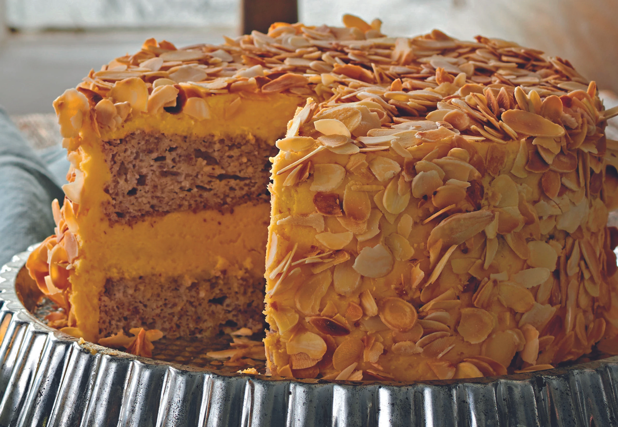 Butter und Staubzucker ca. 5 Minuten schaumig mixen. Vanillecreme esslöffelweise zugeben und untermixen. Die Hälfte der Creme auf einem Mandelboden verstreichen. Zweiten Boden darauflegen und leicht andrücken. Mit der übrigen Creme rundum einstreichen. Torte mit den gerösteten Mandeln bestreuen. Torte ca. 3 Stunden kalt stellen.