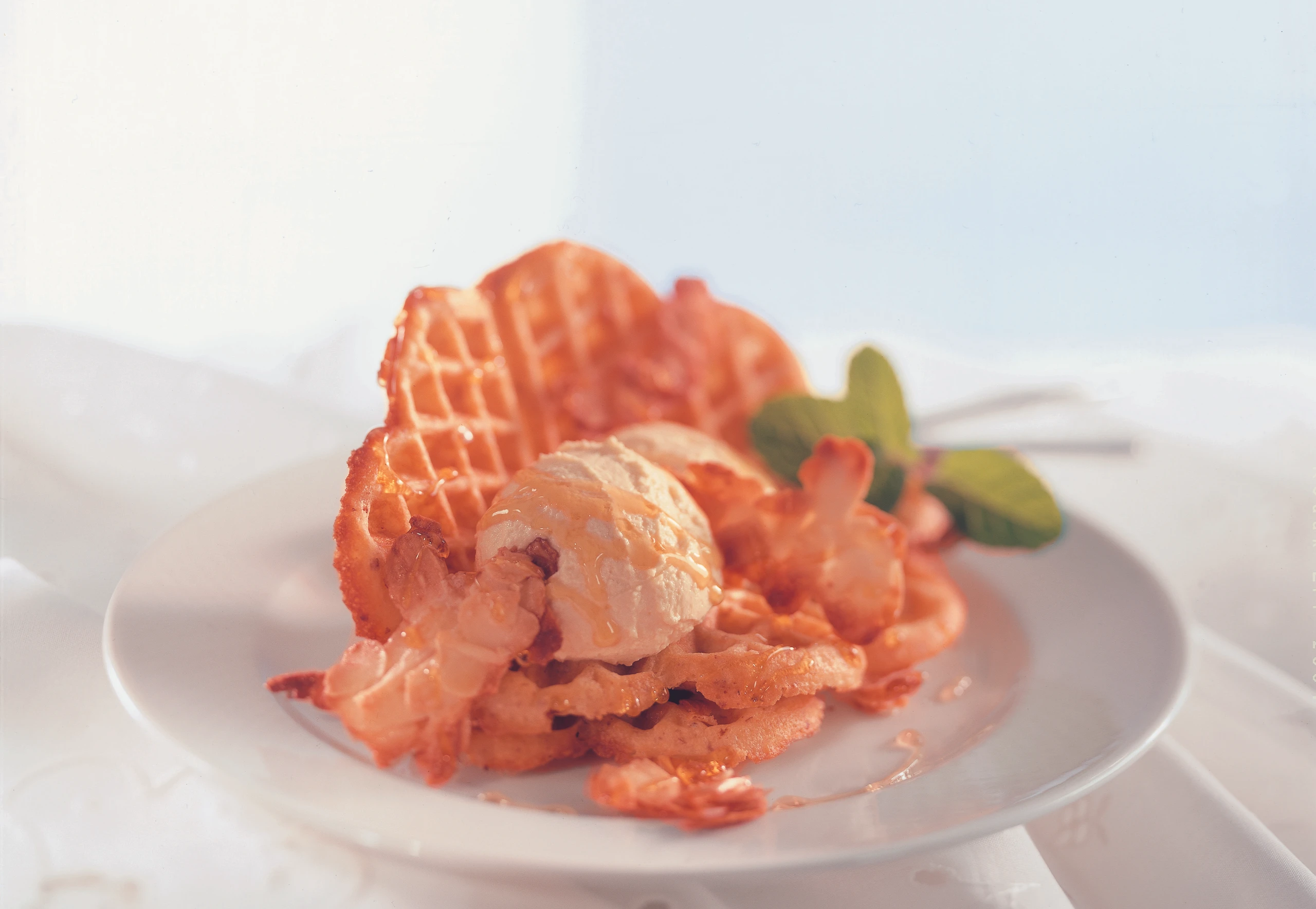 Mandelwaffeln mit Vanilleeis und Mandelkrokant