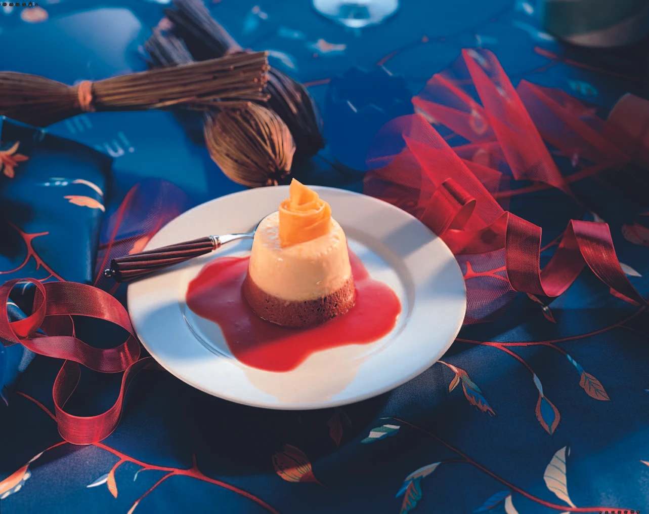 Förmchen kurz in heißes Wasser tauchen, Törtchen auf Teller stürzen, eventuell mit den Mangorosen dekorieren und mit der Blutorangensauce servieren.