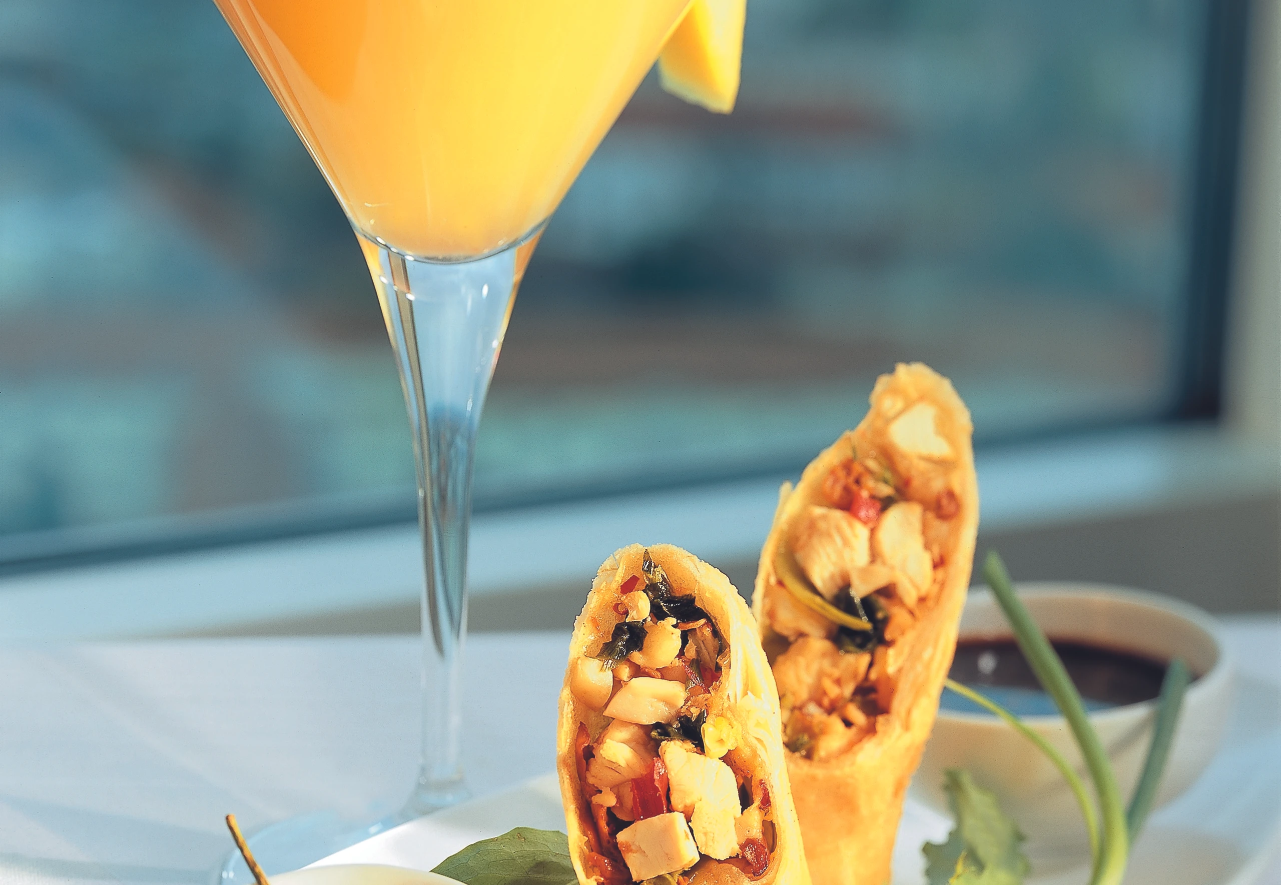 Glasrand in Grenadinesirup, dann in Kristallzucker tauchen.