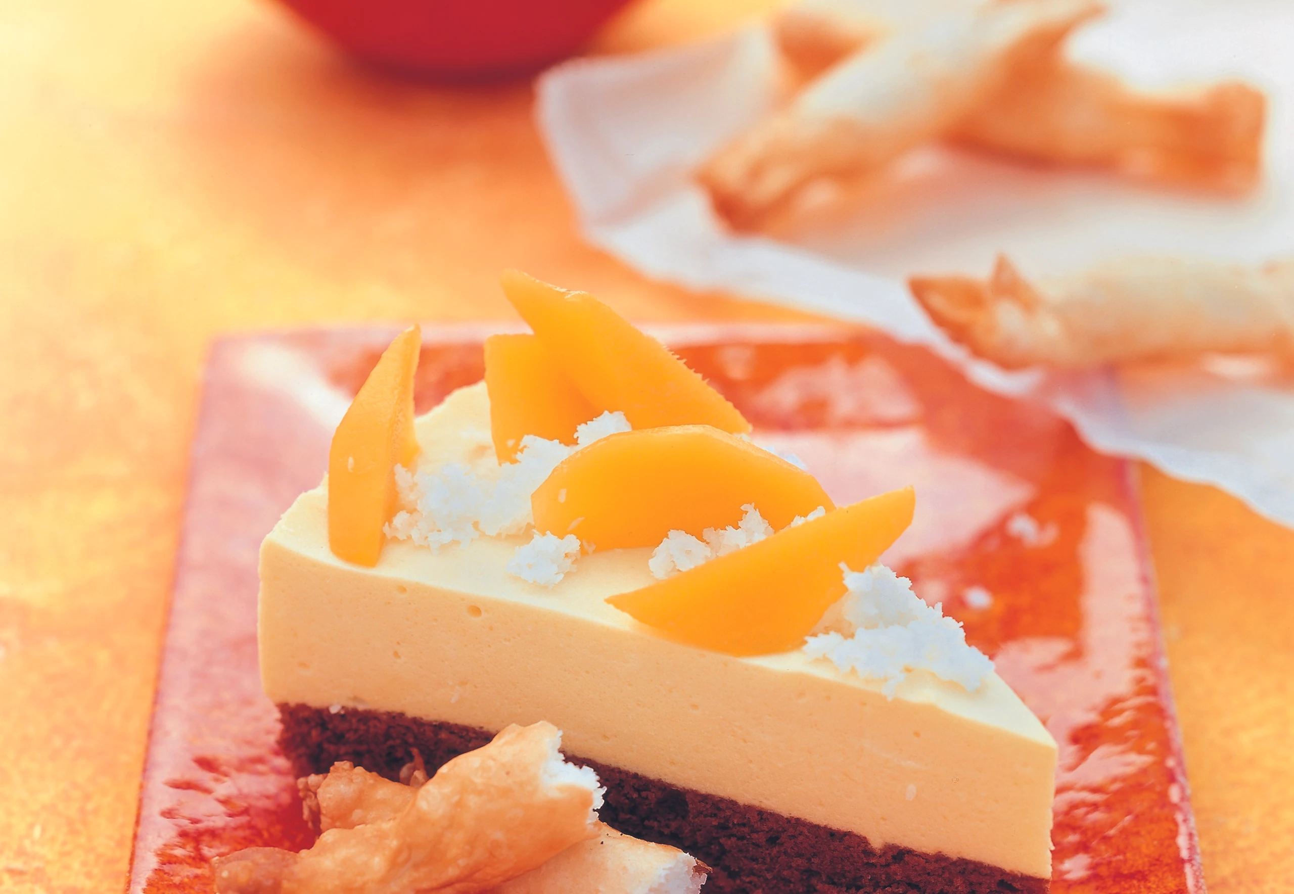 Mangotorte mit Kokosröllchen