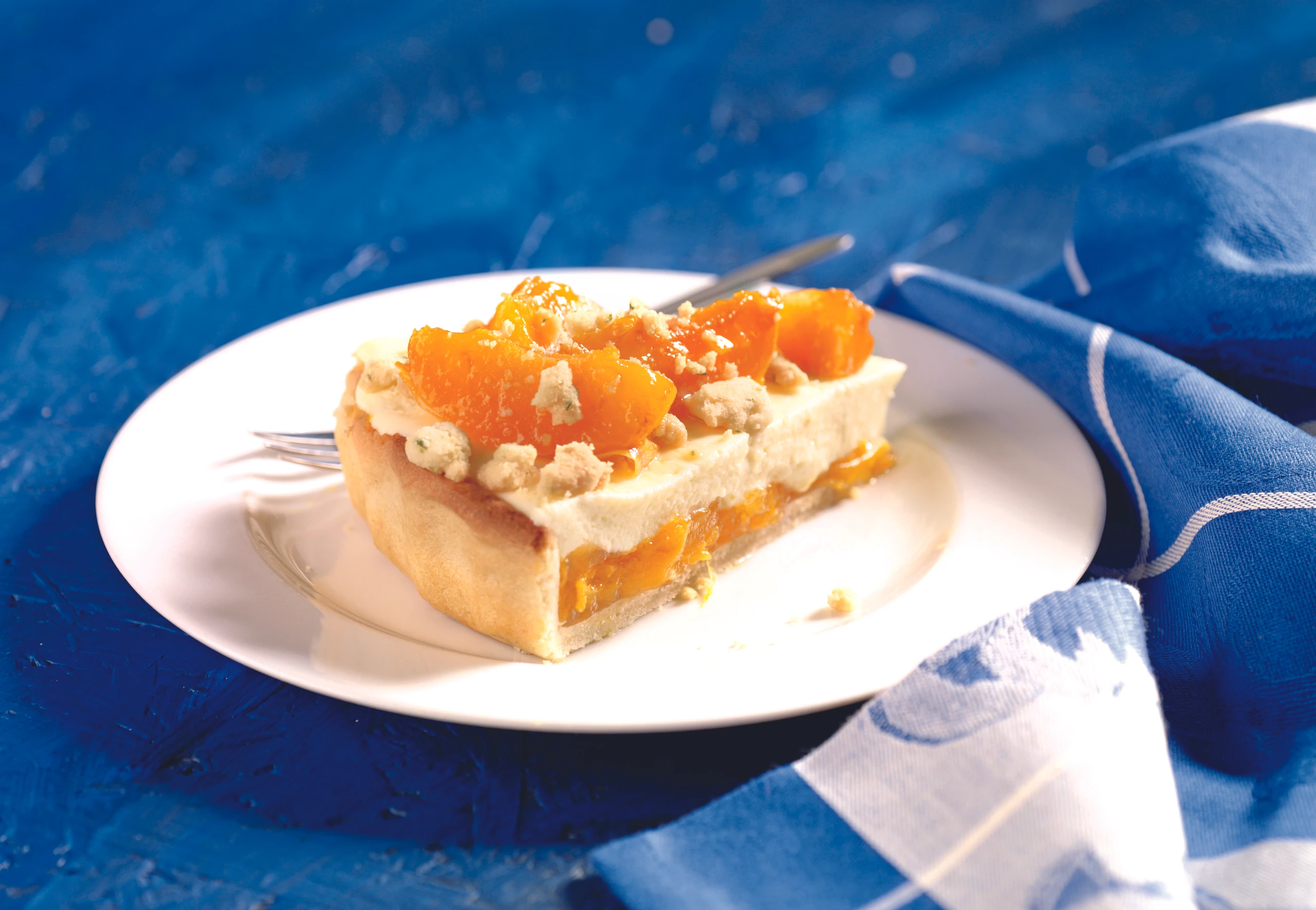 Für das Gelee Gelatine in kaltem Wasser ein-weichen. Die Hälfte der Marillen entkernen und vierteln. Marillen mit 50 ml Wasser und Gelierzucker vermischen und unter Rühren 5 Minuten kochen. Marillen vom Herd nehmen, Gelatine ausdrücken und darin auflösen. Mischung abkühlen lassen, dann auf dem Tortenboden verteilen. Tarte für ca. 1 Stunde kühl stellen.