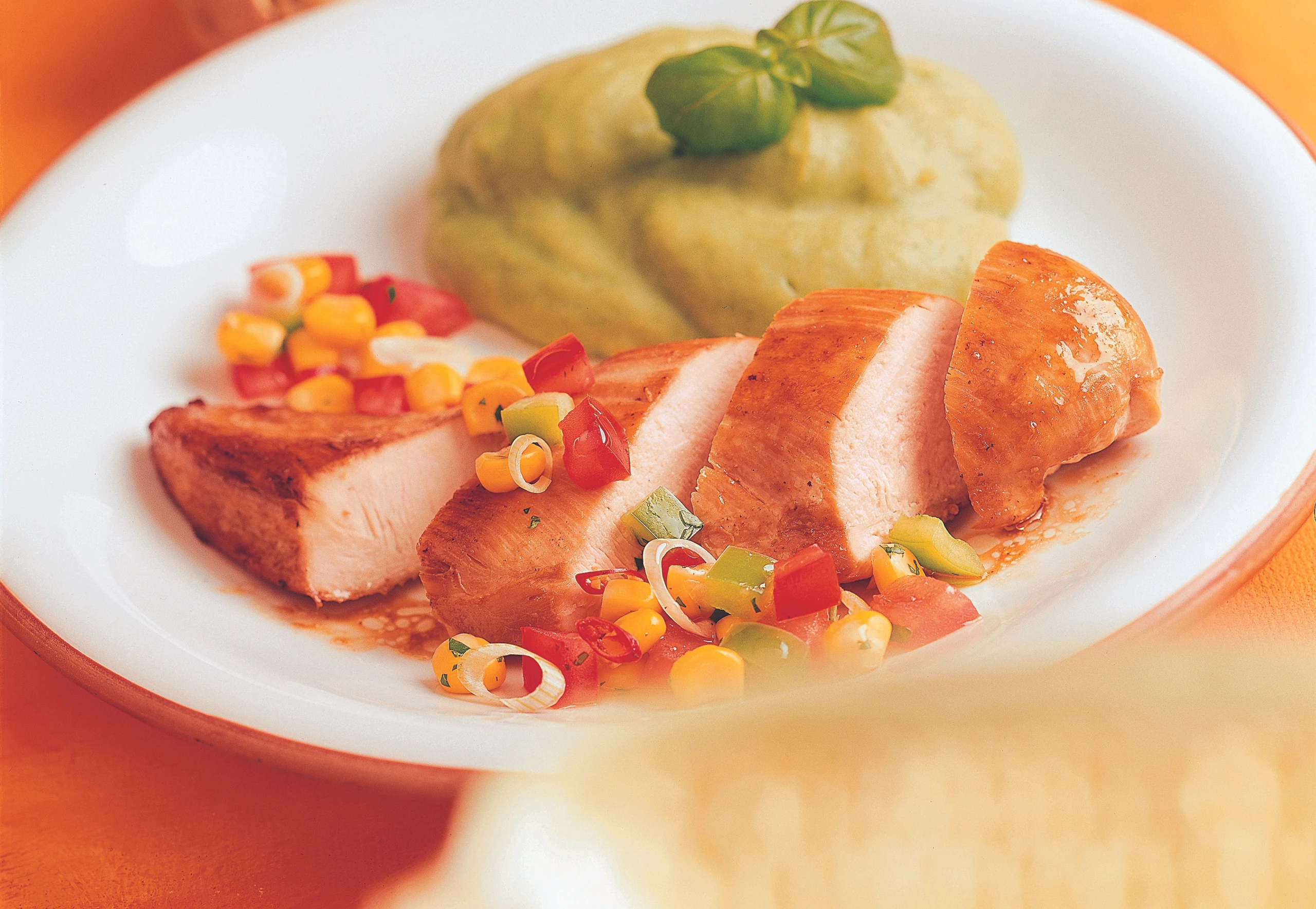 Marinierte, gebratene Hühnerfilets mit Mais-Salsa