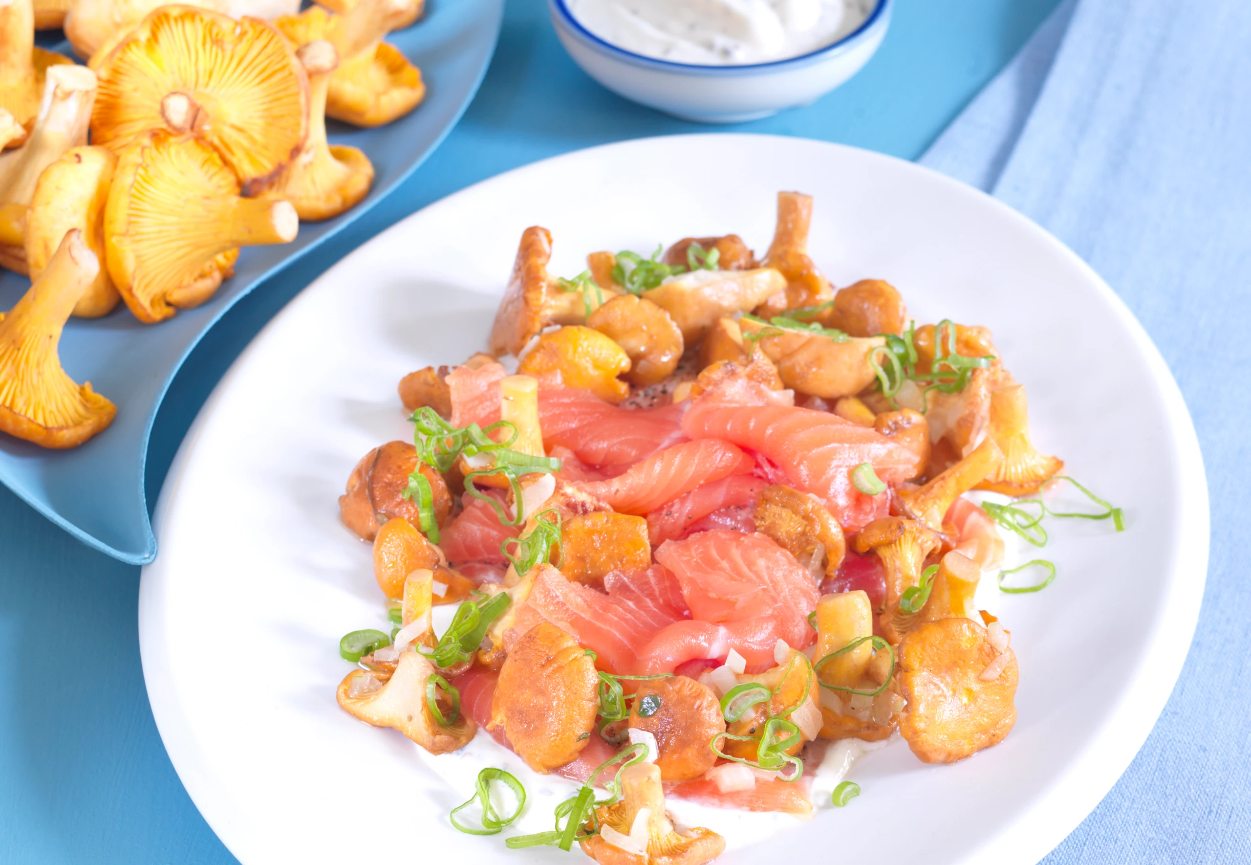 Marinierte Lachsforelle mit gerösteten Eierschwammerln