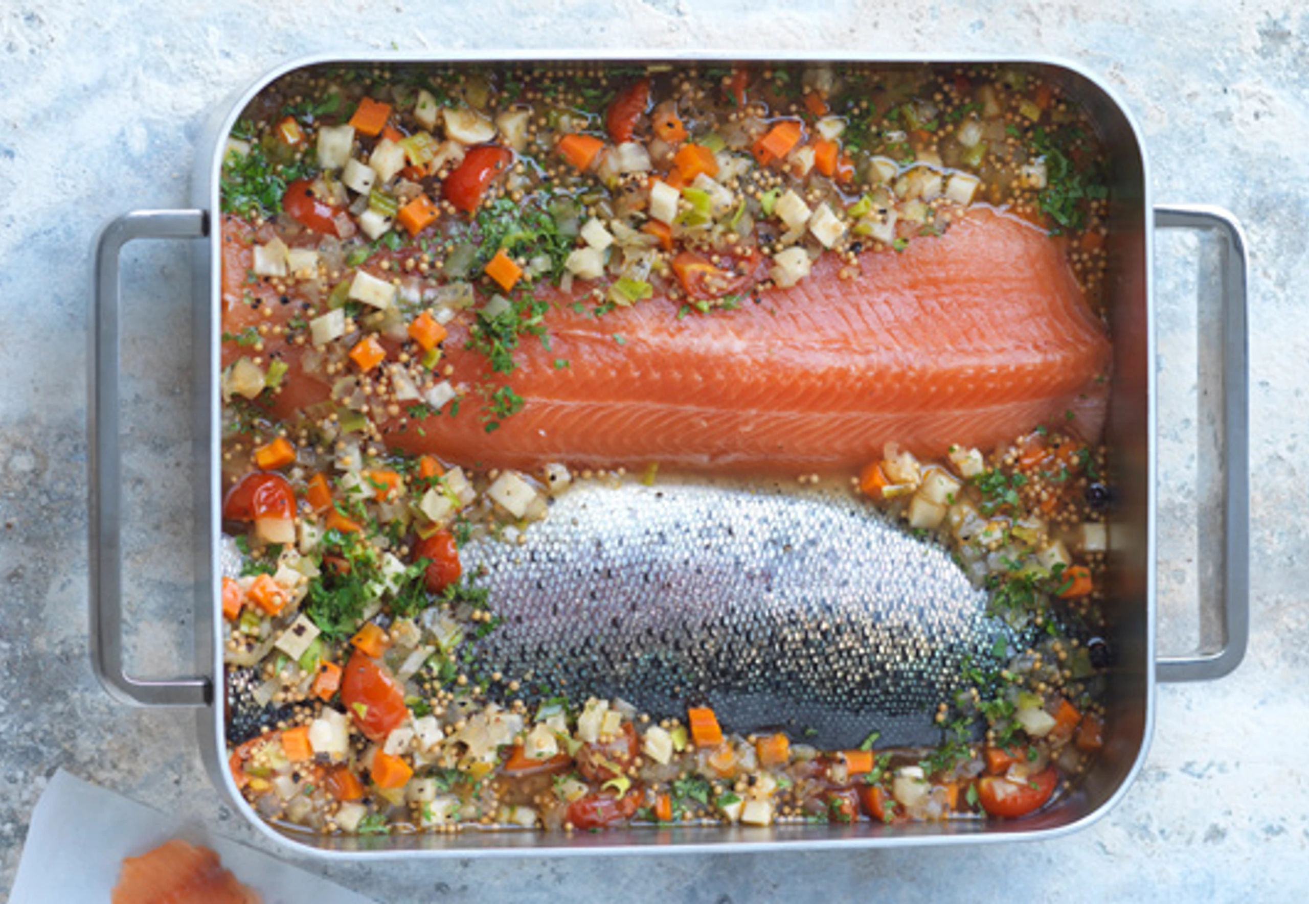 - Filets in ein Gefäß legen, mit der Gemüsemarinade bedecken, zudecken und für ca. 10 Stunden kühl stellen.