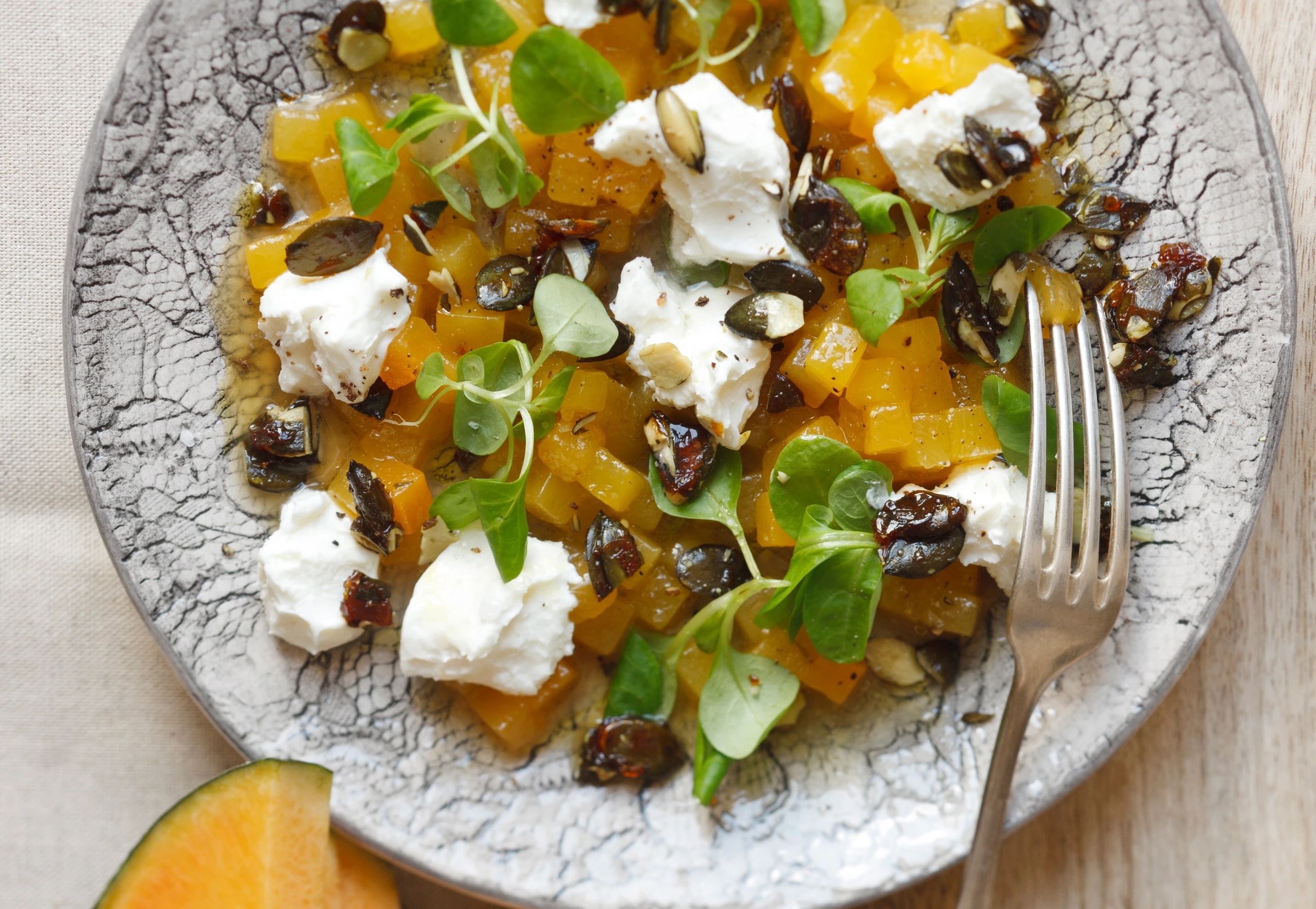 Marinierter Kürbis mit Ziegenkäse und Kürbiskernkrokant